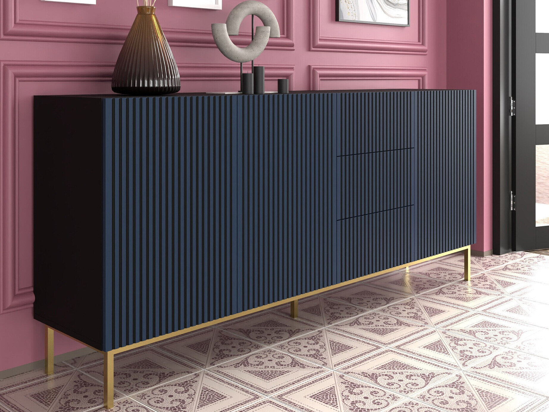 Gerillte Lamellen sind eine Dekoration von Möbel, meist handelt es sich dabei um vertikale Linien, die aus einzelnen Rillen gebildet werden. Diese Gestaltung verleiht den Möbeln nicht nur ein elegantes Aussehen, sondern verleiht dem Innenraum auch Modernität.
