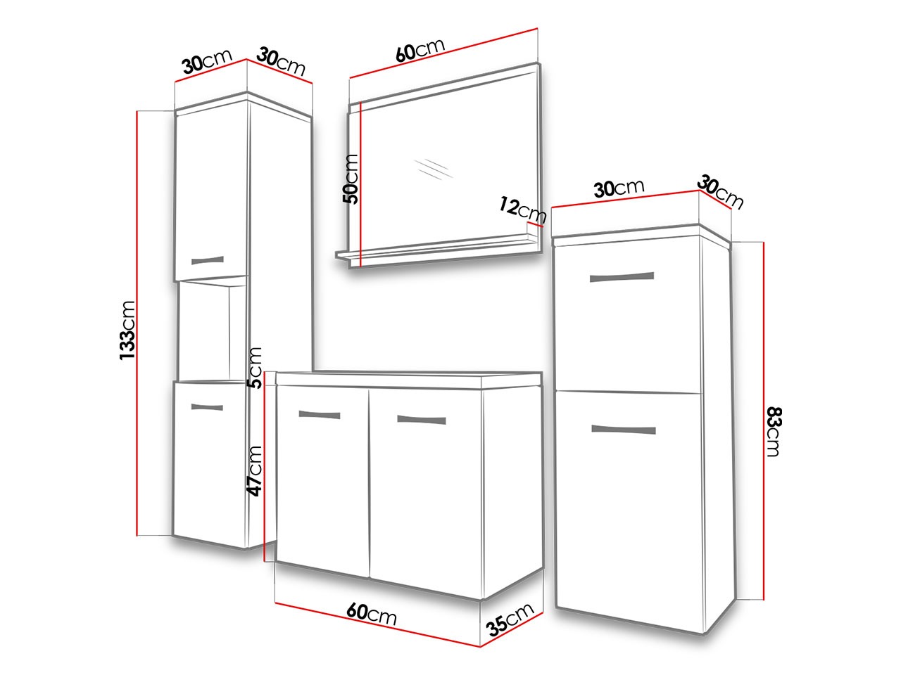 Abmessungen der Hängeschränke: