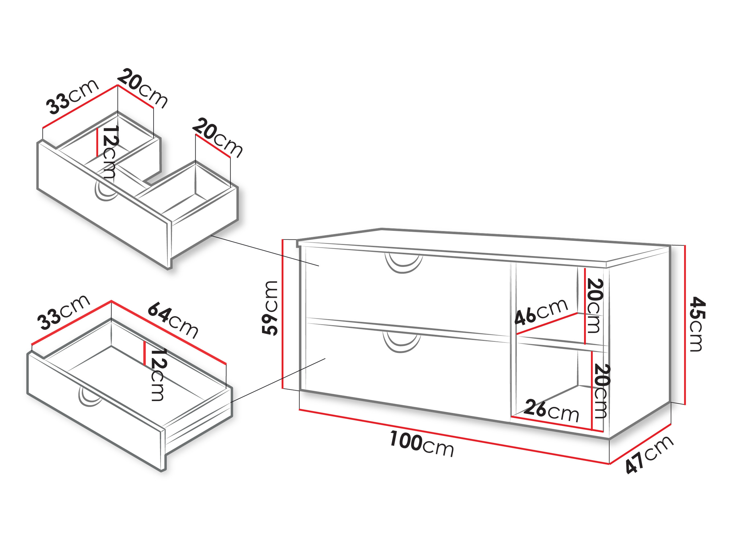 133 cm  35 cm  34 cm