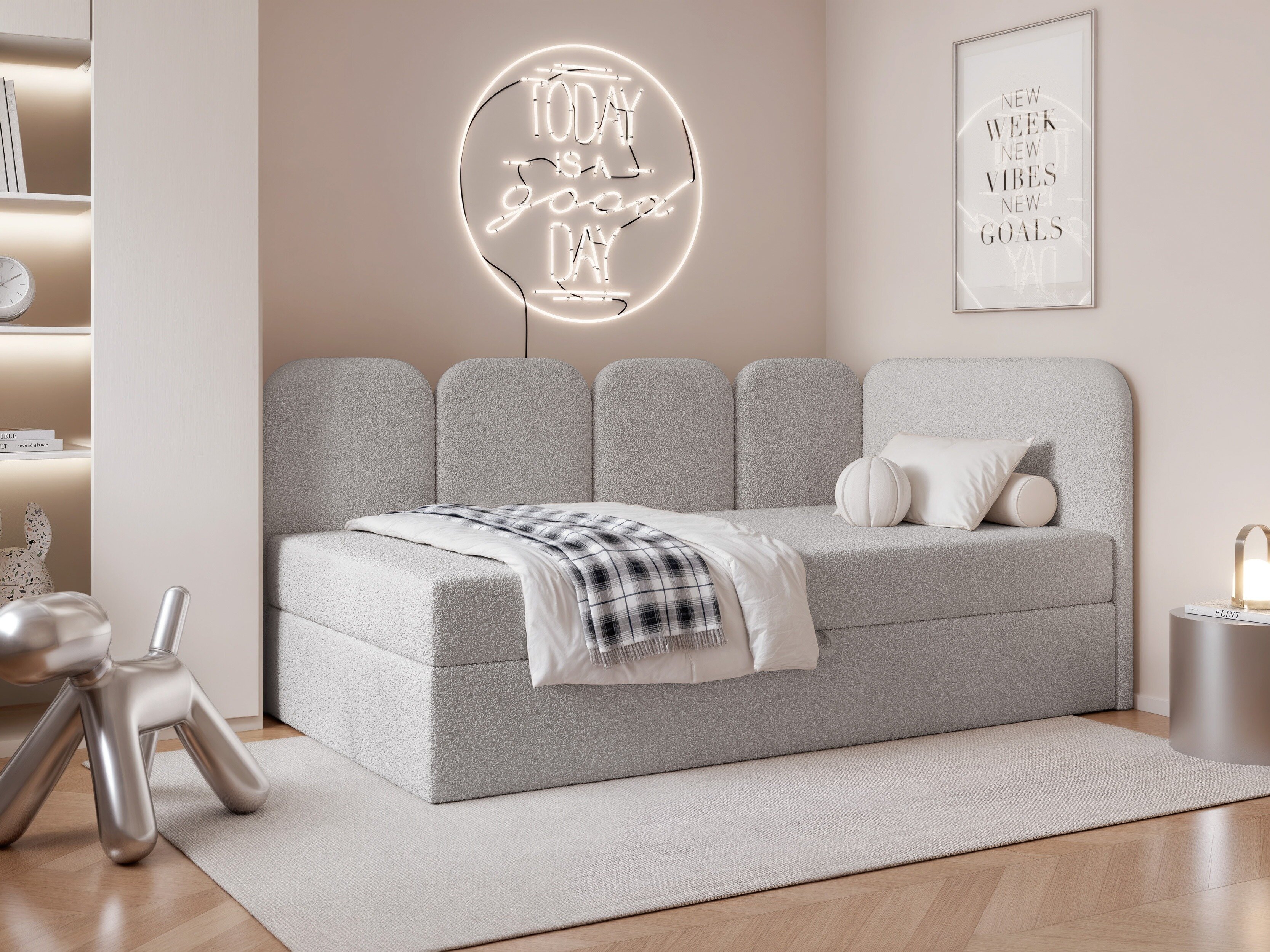 Der «Boucle»-Stoff (Bouclé) zeichnet sich durch sein einzigartiges Strukturmuster aus, das durch unterschiedlich große Schlaufen und Knoten entsteht. Diese Besonderheit verleiht den Möbeln einen außergewöhnlichen Charakter und ein angenehmes Gefühl. Die Oberfläche des Stoffes kann weich oder wollähnlich sein. Dank seiner robusten Struktur ist der Stoff sehr formbeständig, wodurch er zu einem idealen Material für Sofas, Sessel und andere Möbelstücke wird. Wenn Sie einen raffinierten und modernen Raum schaffen wollen, ist dieser Stoff die perfekte Wahl.