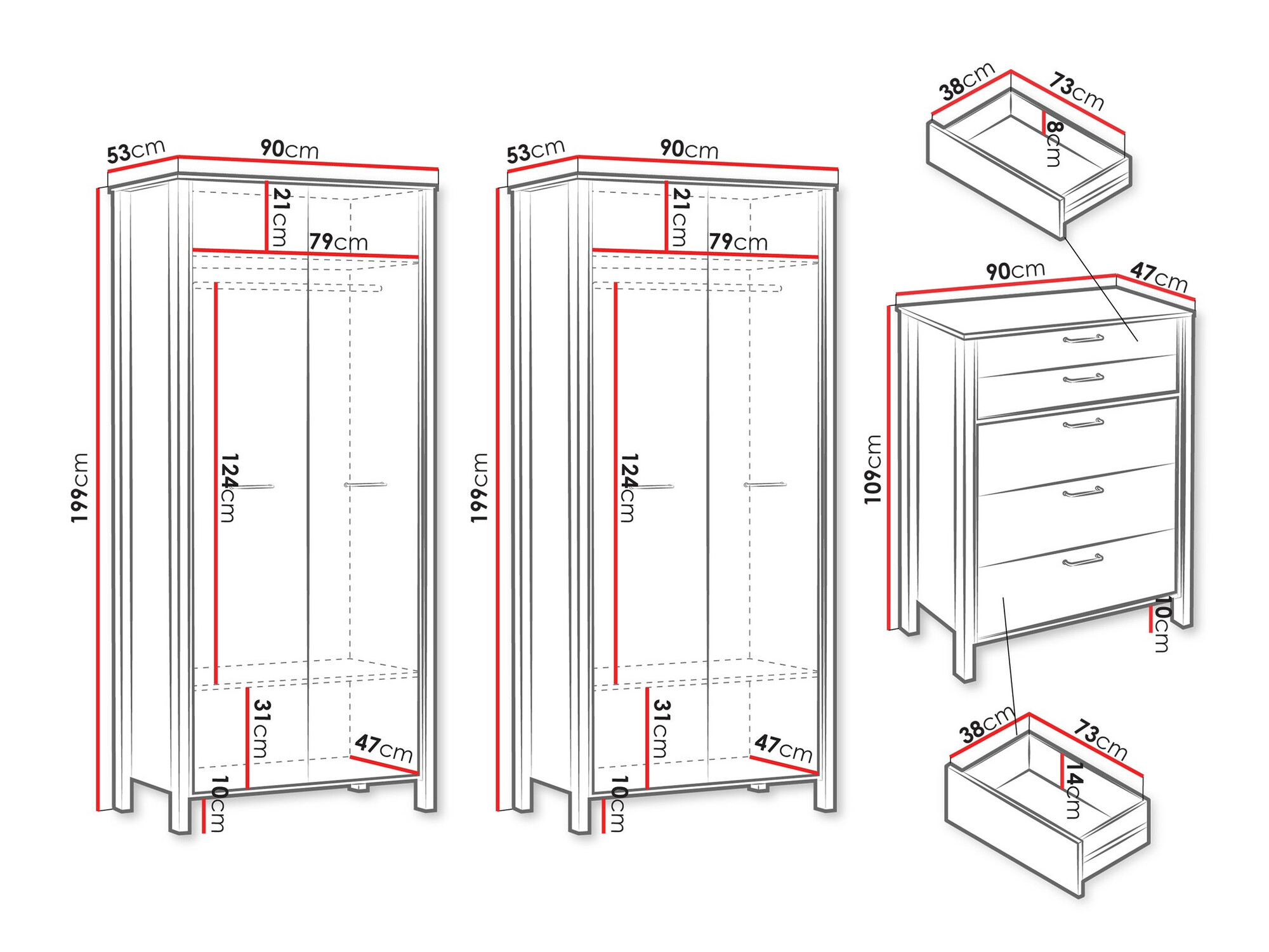 Abmessungen des Kleiderschranks: