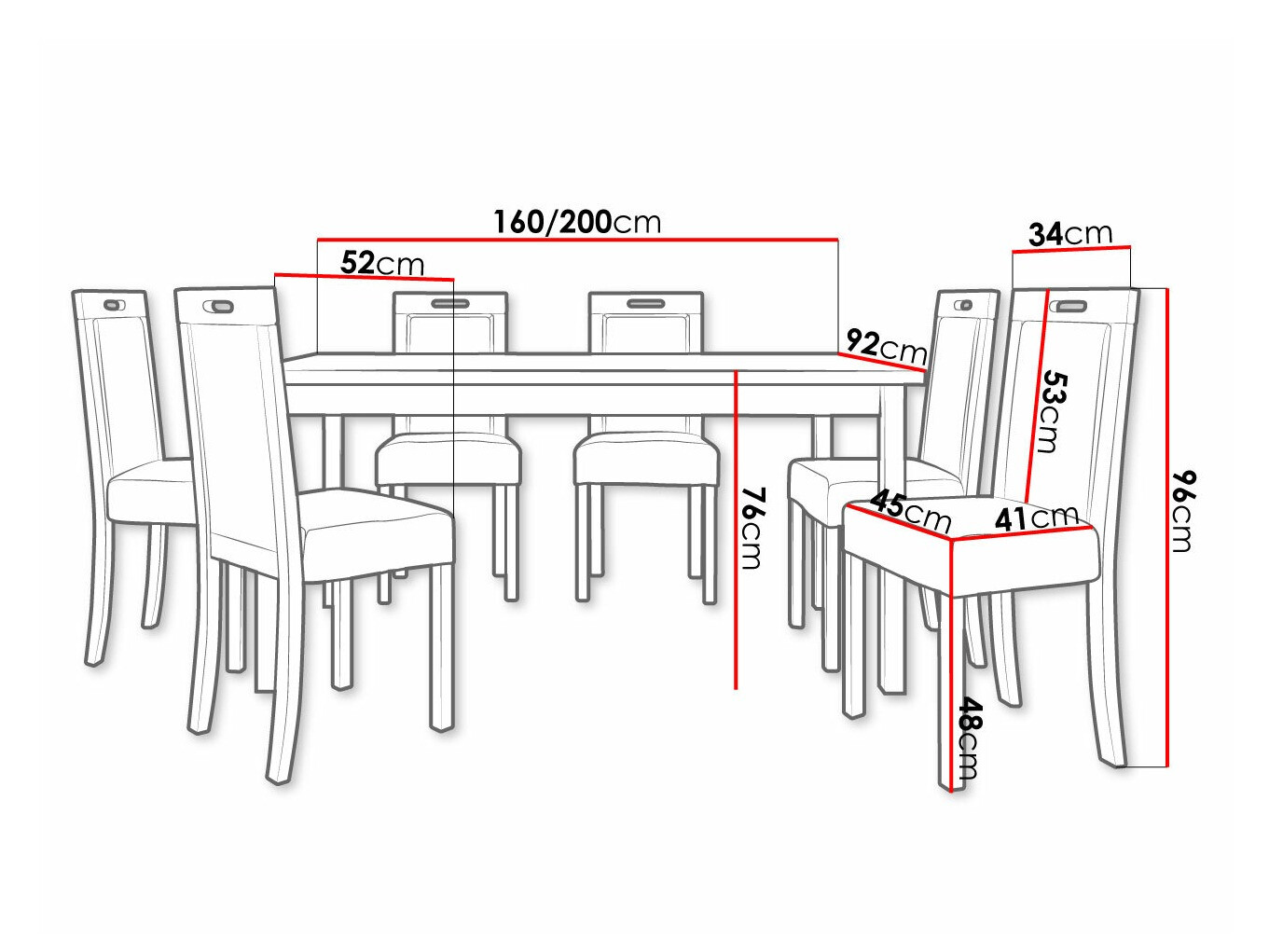 Abmessungen des Stuhls: