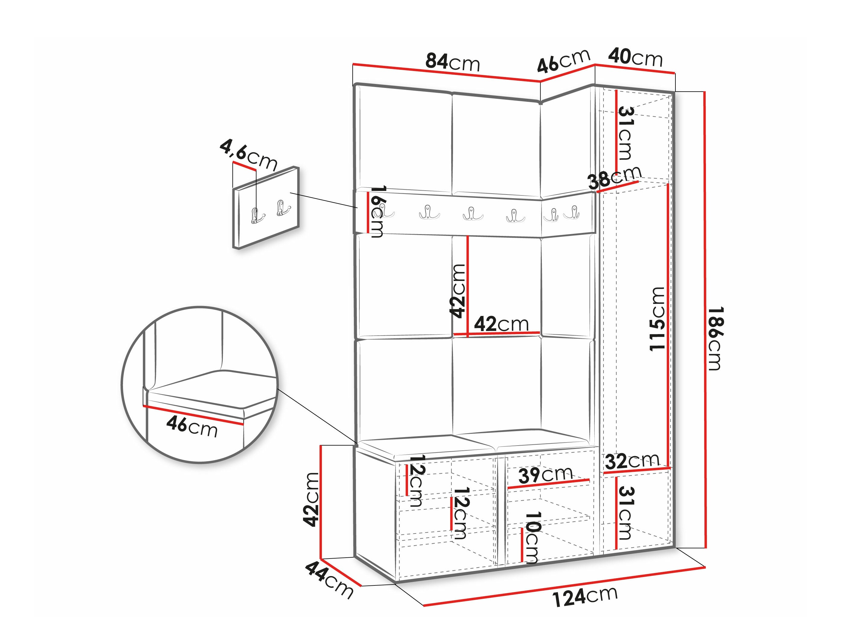 Die Möbel für den Flur sehen gut aus und scheinen hochwertig zu sein. Wir haben eine kleine Änderung vorgenommen und den Kleiderbügel oben an den Paneelen angebracht, nicht dazwischen, damit mehr Platz für Jacken und Mäntel bleibt. Der einzige Nachteil wäre ein zu hoher Preis, da sich hinter den Polsterplatten kein Sperrholz befindet, sie direkt an die Wand geklebt werden und kein Kleber mitgeliefert wird, sie müssen separat erworben werden
