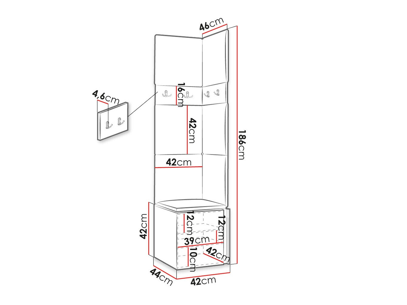 Abmessungen des Schuhschranks: