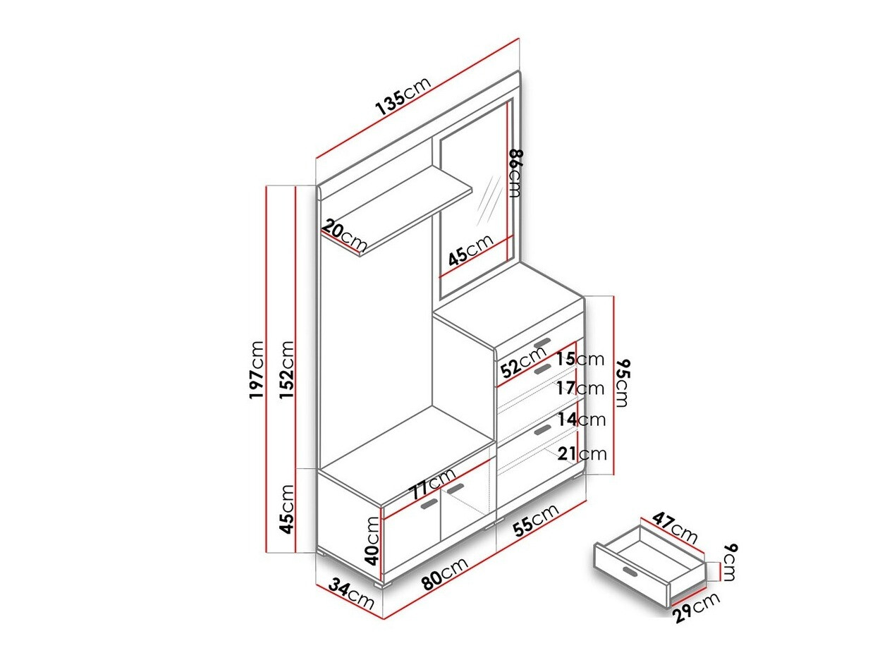 Die Möbel sind stabil, aber eine genaue Montageanleitung fehlt. Es könnten zwei weitere Haken angebracht werden, und zwar etwas tiefer als die vorhandenen.