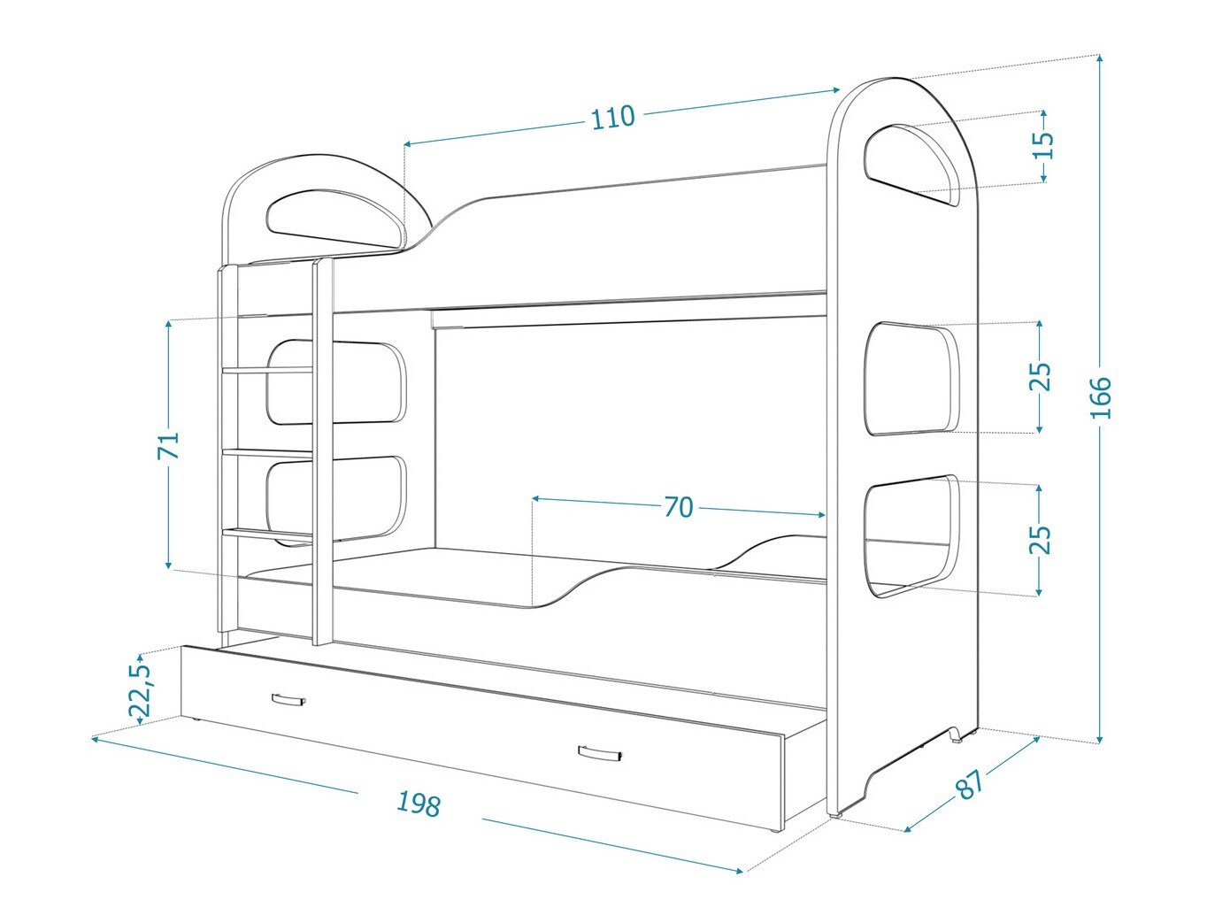 Das Etagenbett ist wunderschön und sehr robust (die Leiter auch) Alles ist wie auf dem Foto. Wie bei allen Produkten dieser Art ist der Zusammenbau sehr mühsam und die Anleitung in einer anderen Sprache ist nicht ganz klar, aber mit Geduld und Zeit ist er zu schaffen. Die untere Schublade ist riesig und bietet Platz für viele Dinge. Das Ergebnis ist so gut, dass ich es zu 100 % weiterempfehle.