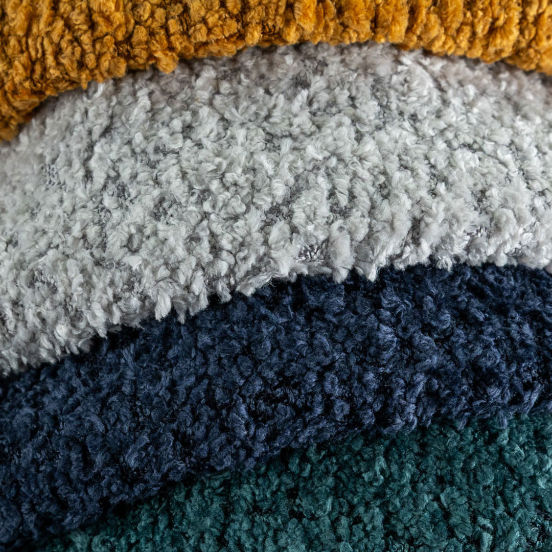 Der «Boucle»-Stoff (Bouclé) zeichnet sich durch sein einzigartiges Strukturmuster aus, das durch unterschiedlich große Schlaufen und Knoten entsteht. Diese Besonderheit verleiht den Möbeln einen außergewöhnlichen Charakter und ein angenehmes Gefühl. Die Oberfläche des Stoffes kann weich oder wollähnlich sein. Dank seiner robusten Struktur ist der Stoff sehr formbeständig, wodurch er zu einem idealen Material für Sofas, Sessel und andere Möbelstücke wird. Wenn Sie einen raffinierten und modernen Raum schaffen wollen, ist dieser Stoff die perfekte Wahl.