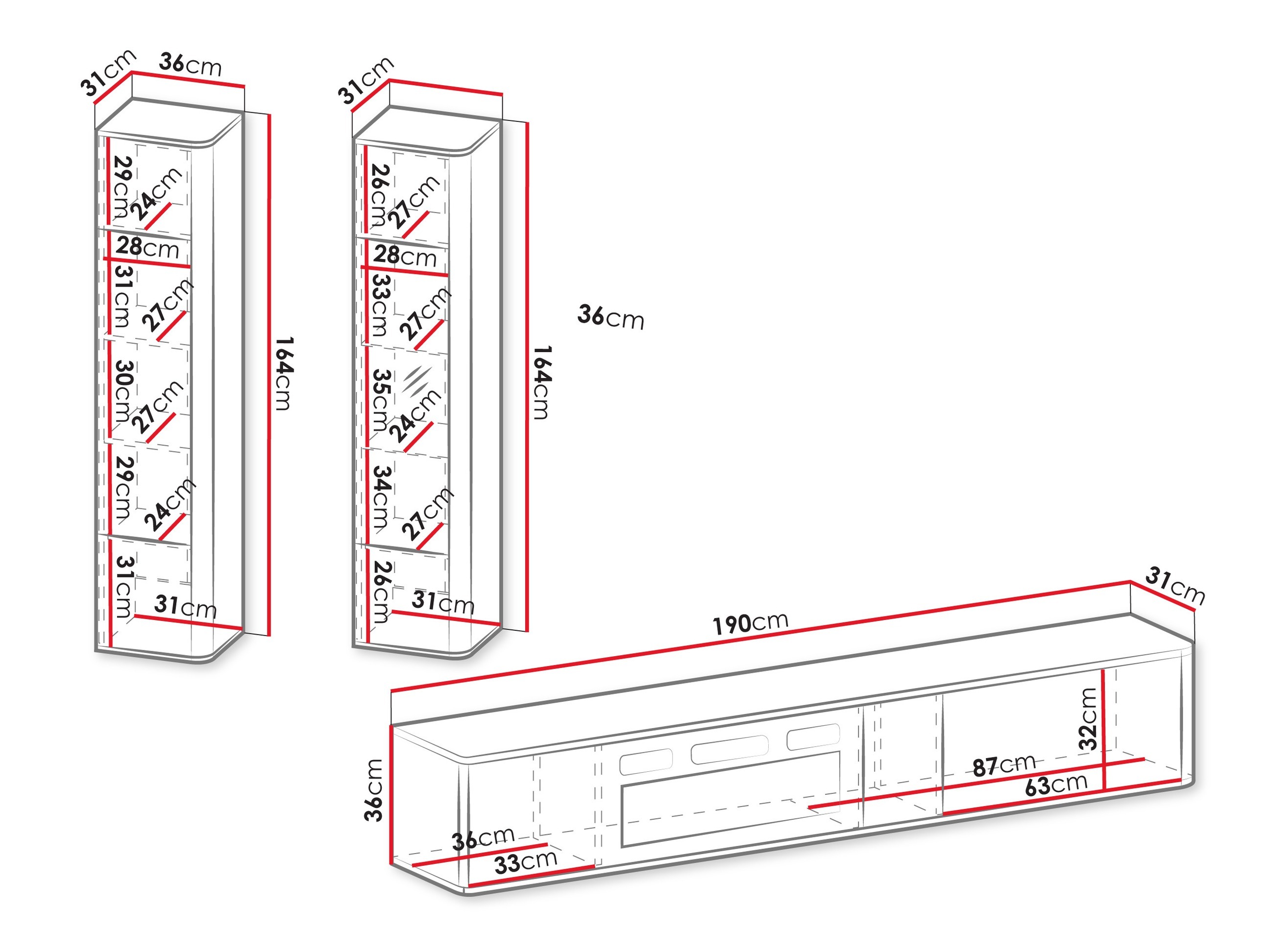 36 x 190 x 31 cm