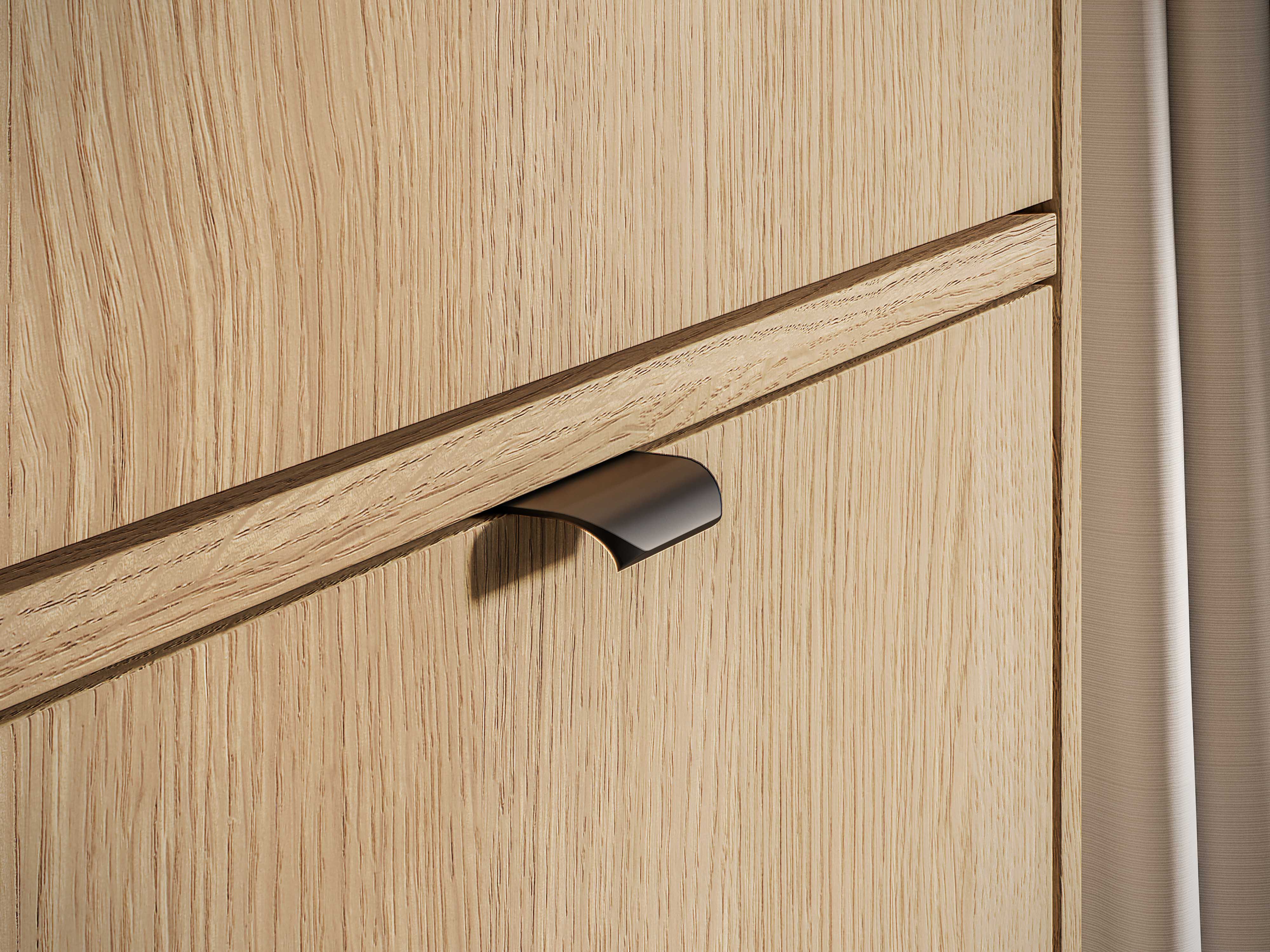 Öffnen Sie Türen und Schubladen mit nur einer Berührung. Das «Push to Open» -Öffnungsmechanismus besteht aus einer Feder und einem Magnetmechanismus zum Drücken und Halten der Tür. Ausserdem gibt es Scharniere mit speziellen Gasdruckfedern zum Öffnen der Tür. Dank diesem Mechanismus benötigen die Möbel keine Griffe. Sie können Türen und Schubladen mit einem Klick öffnen und schliessen.