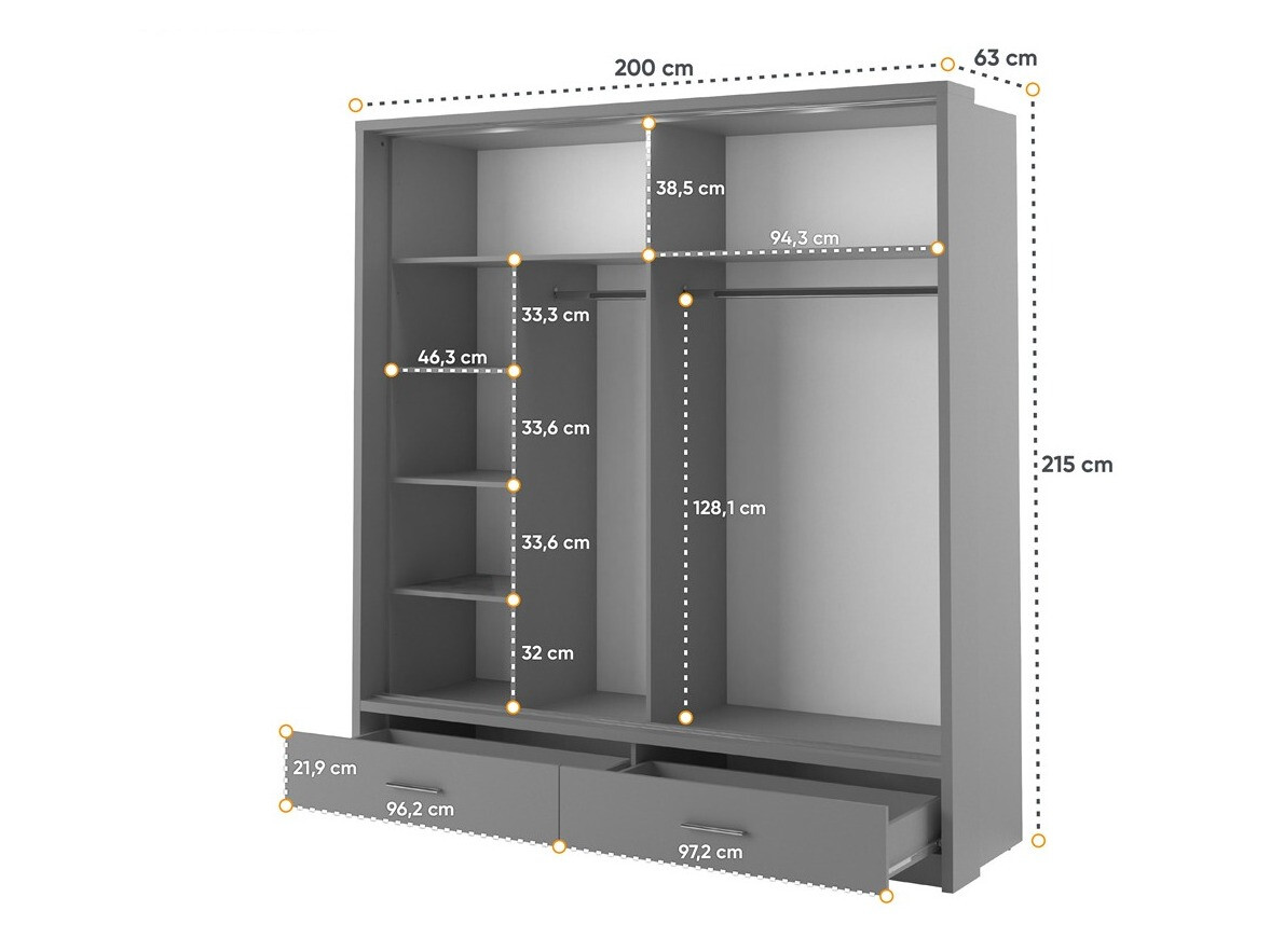 Ich habe mich für diesen Kleiderschrank entschieden, weil mir sein Aussehen und seine Aufteilung gefallen haben! Der Kleiderschrank ist aus ausgezeichnetem, hochwertigem Material. Ausgezeichnete Beleuchtung!! Was mir auch gefallen hat und mir wichtig war, war die schnelle Lieferung. Und ein großes Lob an die Leute, die dort arbeiten, sie sind so nett, sie beantworten alle Fragen sofort! Genauso wie die Lieferung selbst, super! Ich werde auf jeden Fall weiterhin bei Ihnen kaufen!