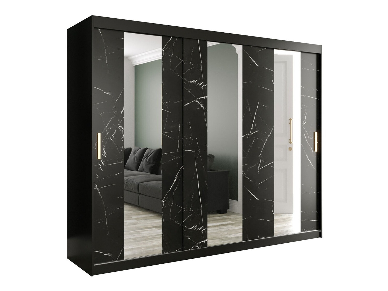 Kleiderschrank Hartford 245 (Mattschwarz + Schwarzer Marmor)