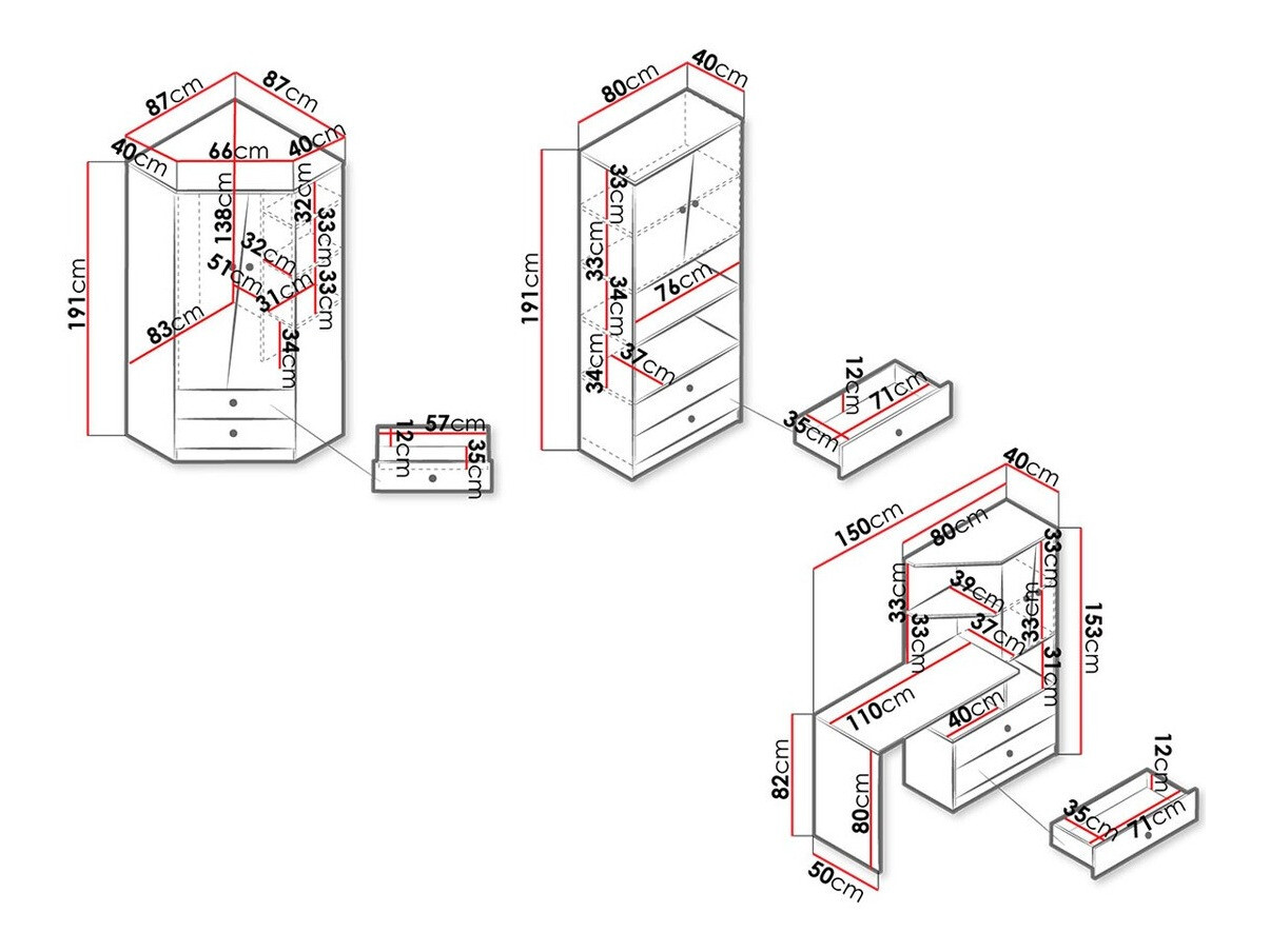 Die modern anmutenden Möbel sind in trendigen Farbkombinationen erhältlich: Die Eichenholzoptik «Artisan» mit der Farbe Weiss oder die Eichenholzoptik «Artisan» mit den Farben Weiss und Grau. Die an den Möbeln angebrachten runden Griffe sind ein interessantes dekoratives Element der Kollektion, das den Möbeln Verspieltheit verleiht. Es ist möglich, ein Jugendzimmer einzurichten, indem man Möbel aus einer breiten Palette von Einzelmöbeln oder fertige Möbelsets wählt. Diese Jugendzimmermöbel bestehen aus langlebigen Materialien, an denen Sie viele Jahre lang Freude haben werden. Abgerundet wird das elegante Design durch kunststoffgeschützte Kanten, die aus stossfestem Material gefertigt sind.