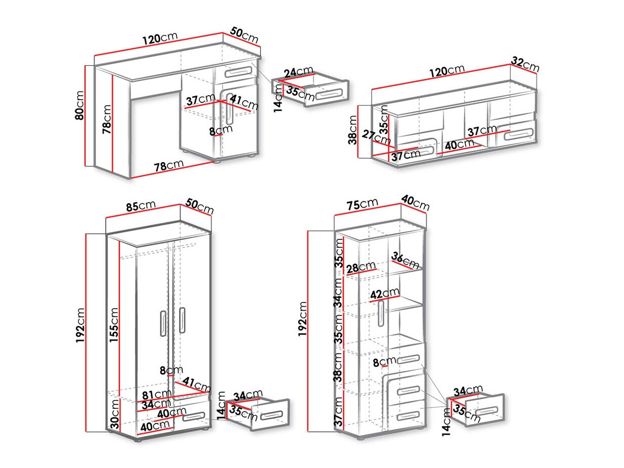 Abmessungen des Kleiderschranks: