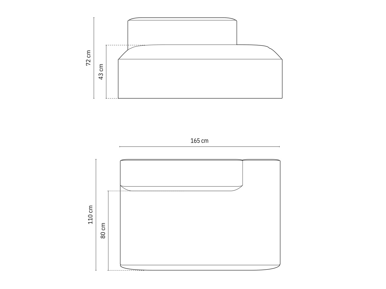 Vollständig gepolsterte Rückenlehne. Geeignet für eine Platzierung in der Mitte des Raums.