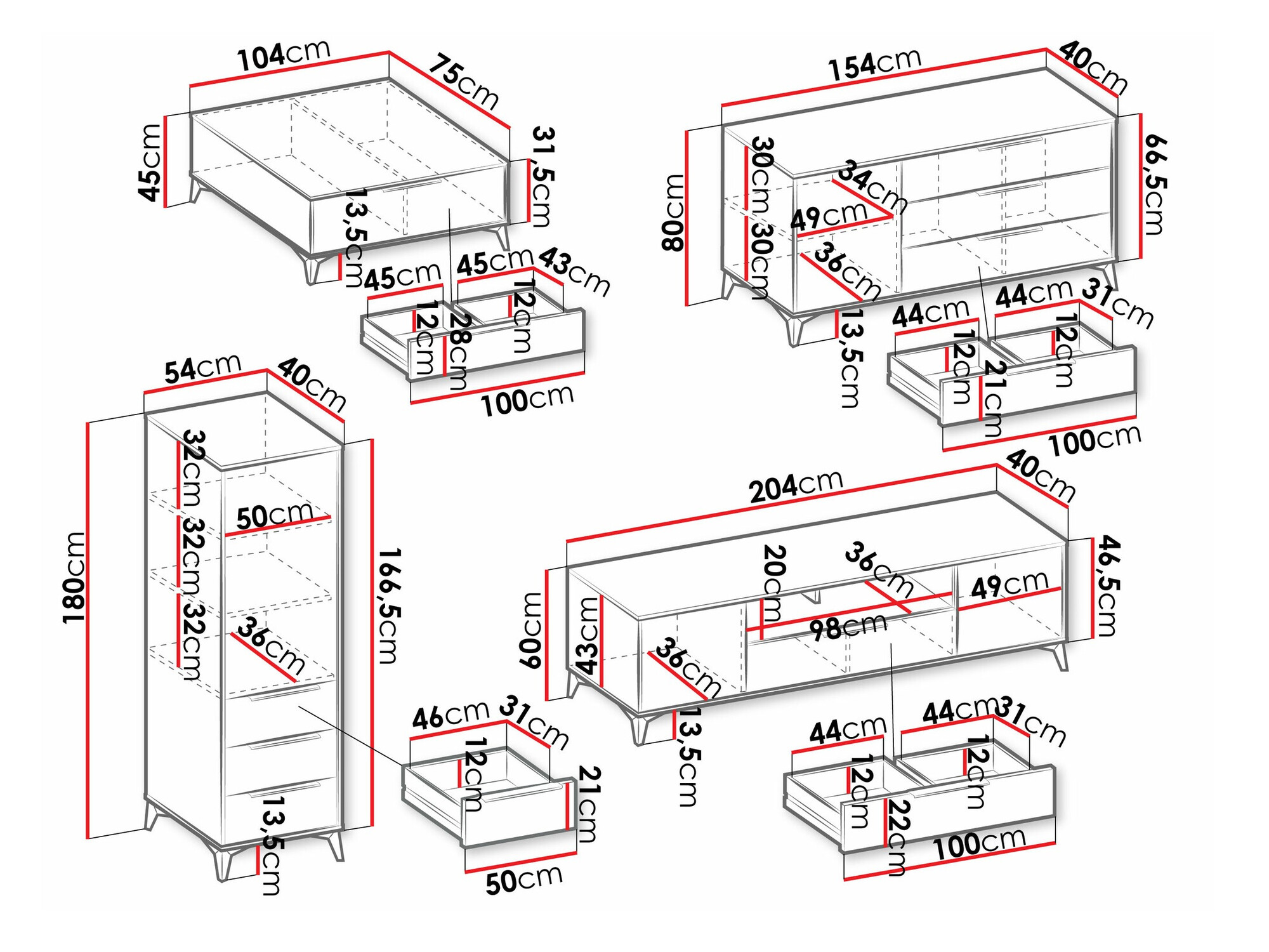 45 cm  75 cm  104 cm