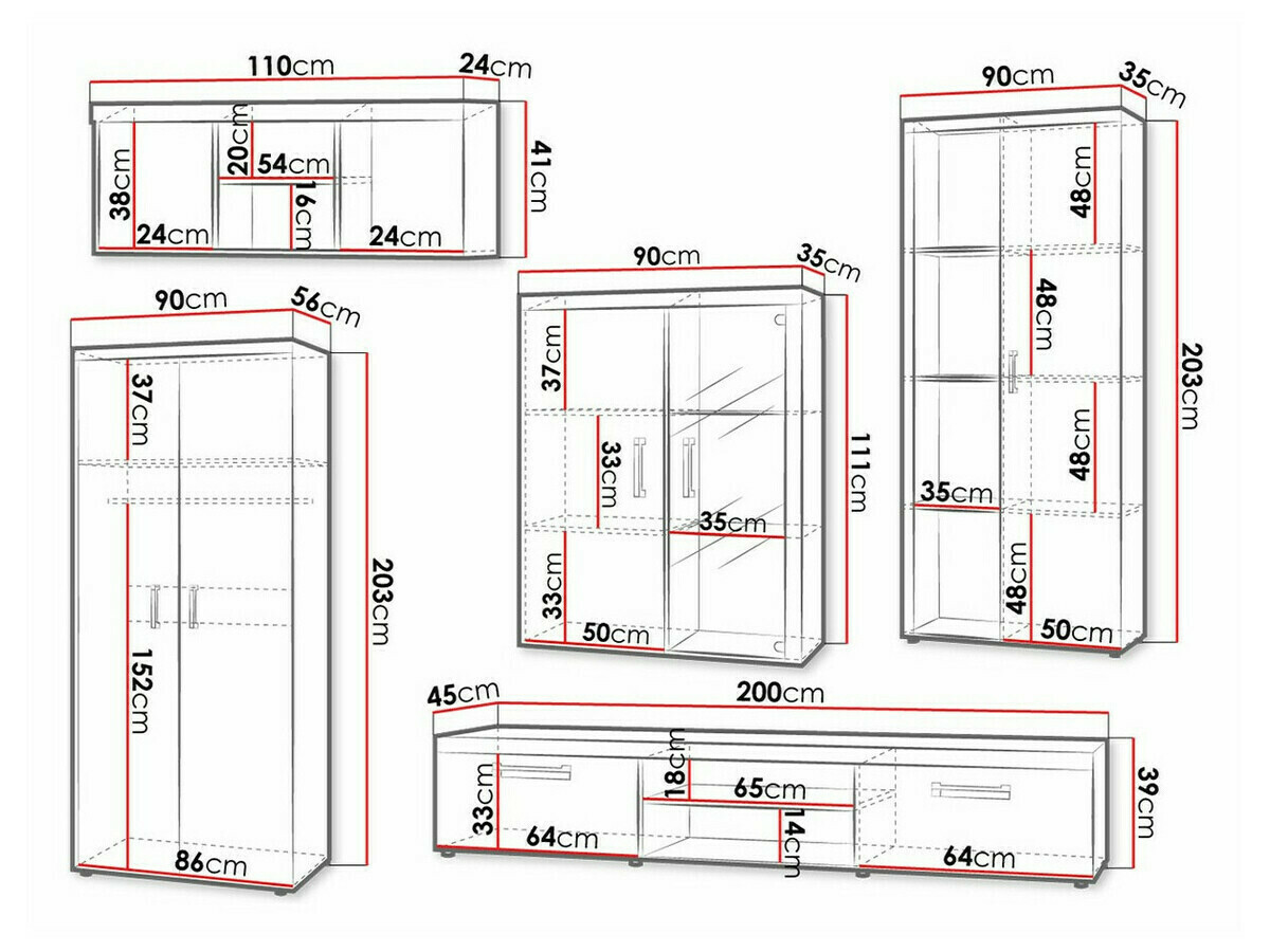 Abmessungen der Hängeschränke: