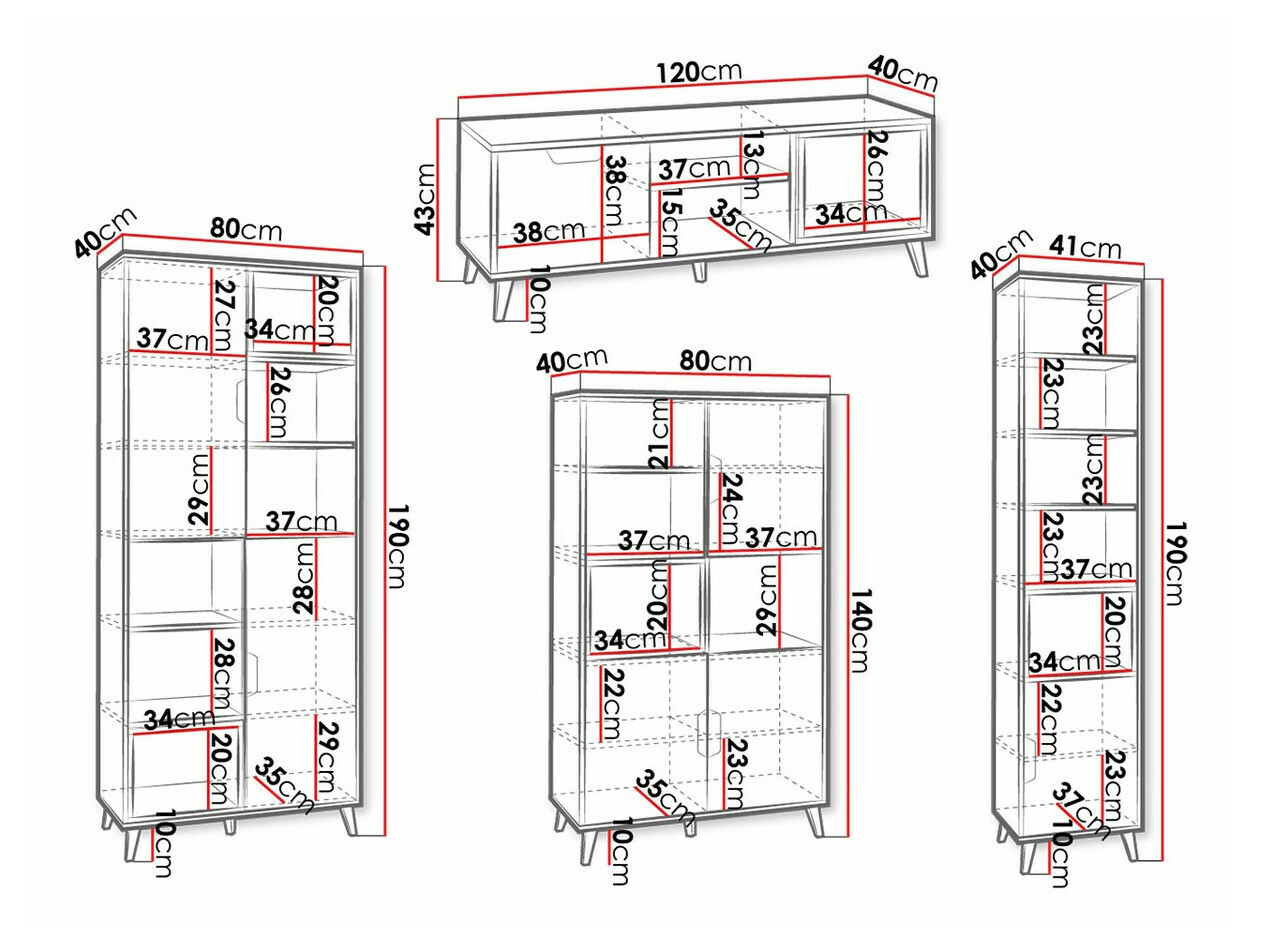 190 x 80 x 40; 190 x 41 x 40; 140 x 80 x 40 cm
