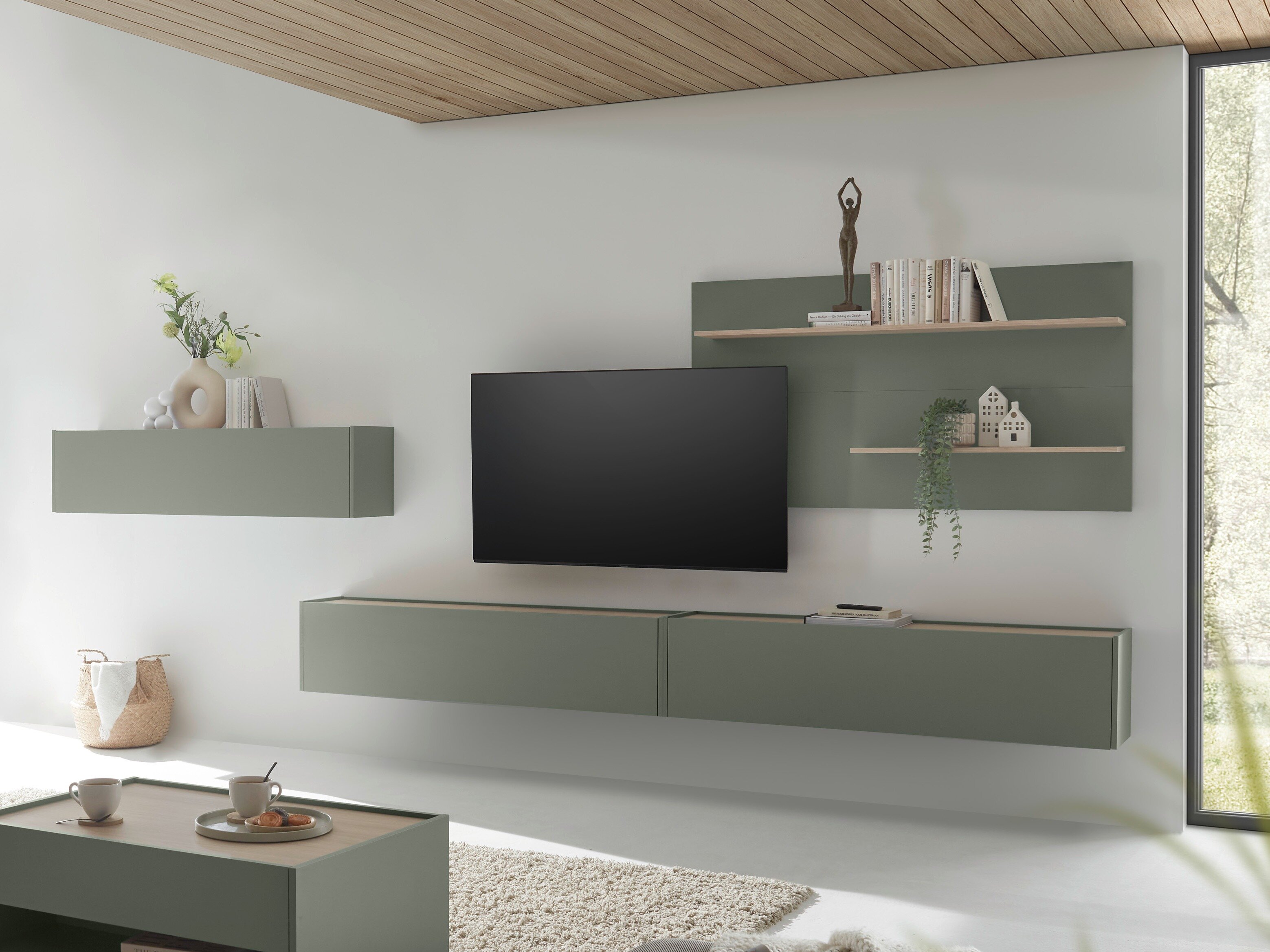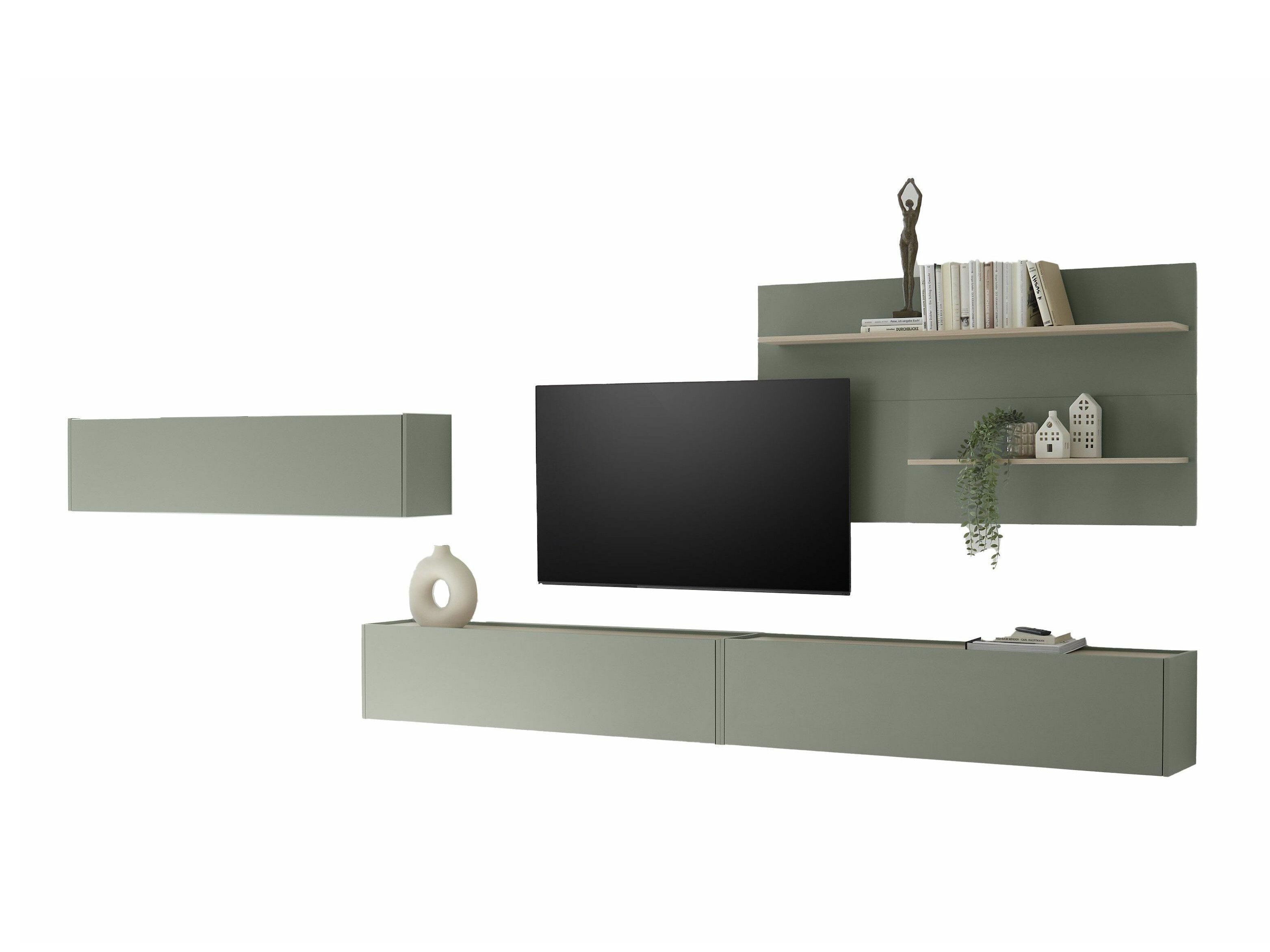Wohnzimmer-Sets Elbsori 121 (Grün + Eichenholzoptik)