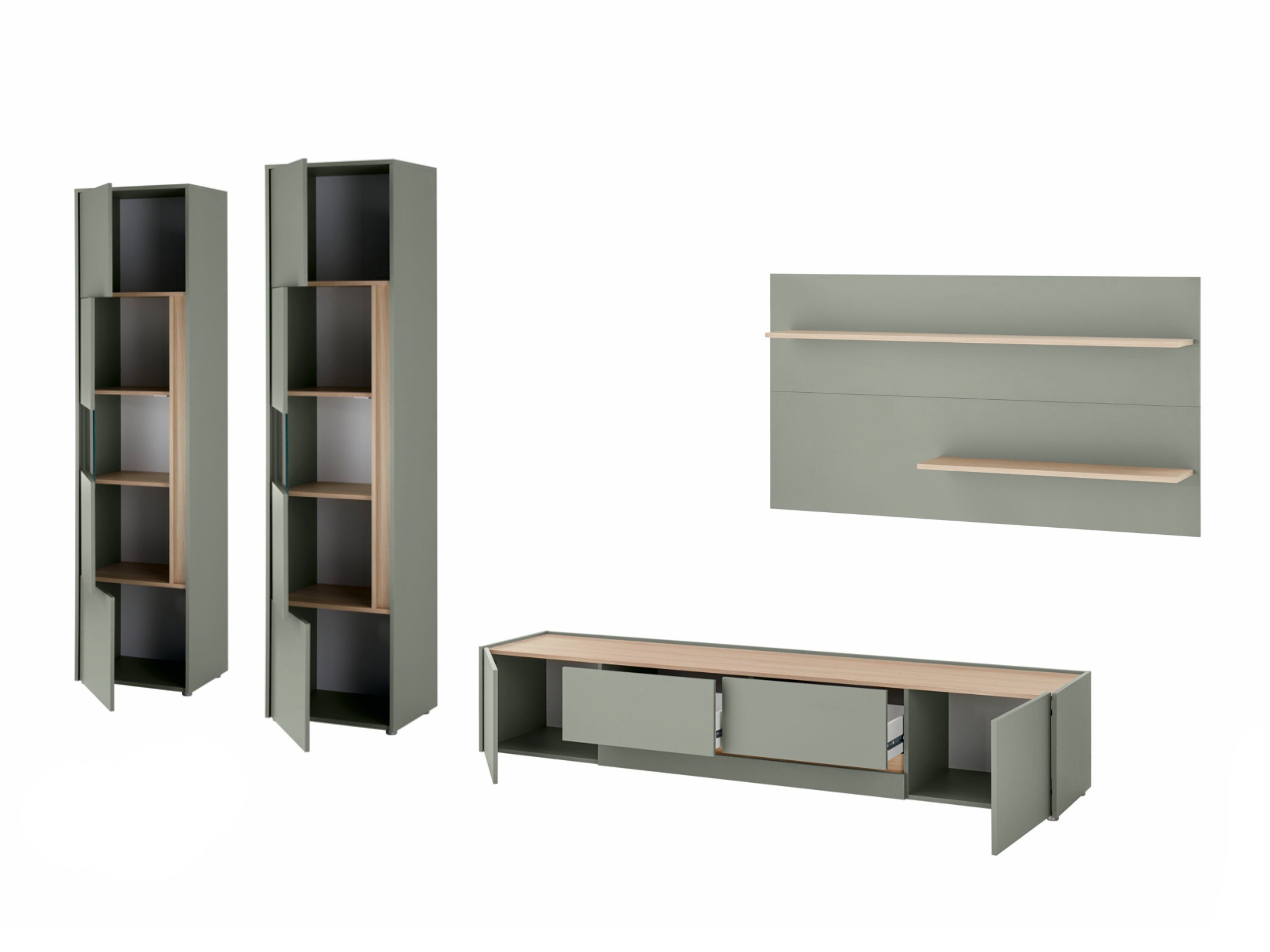 Wohnzimmer-Sets Elbsori 132 (Grün + Eichenholzoptik)