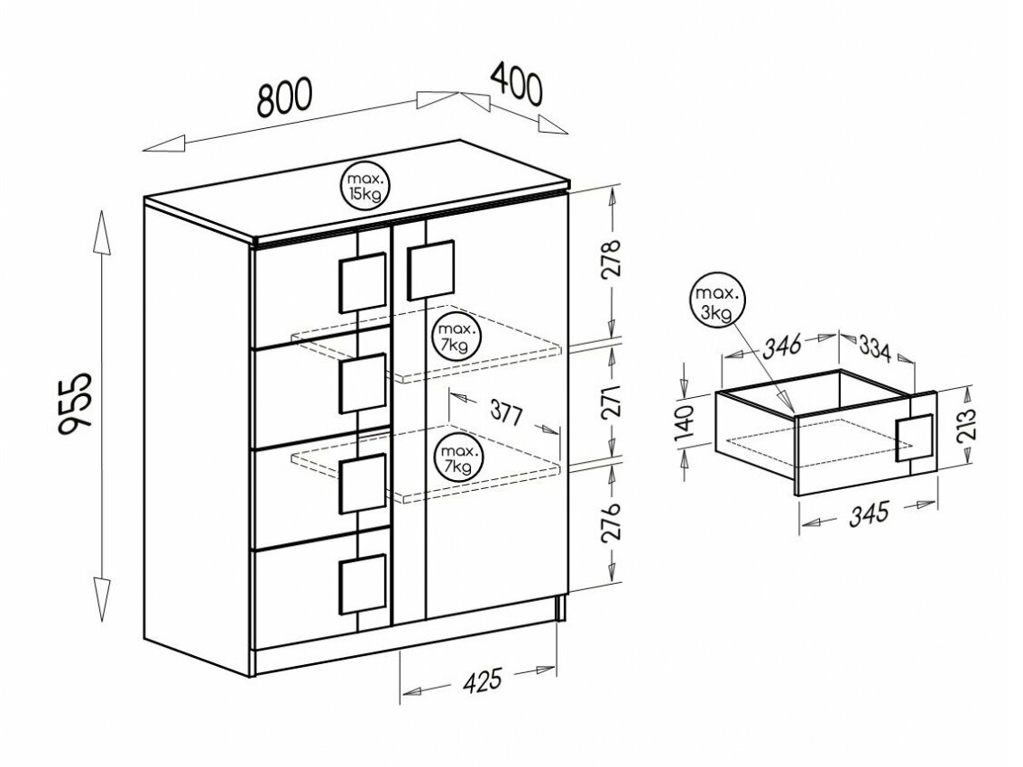 Maximale Gewichtskapazität für die Schublade: