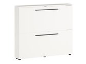 Die Kollektion moderner Flurmöbel wird jeden Liebhaber der Moderne begeistern. Ergänzt wird diese Kollektion durch lange schwarze Metallgriffe, die sich perfekt in das Design der Möbel einfügen. Die Möbel sind pflegeleicht, da sie mit einem farblosen Material überzogen werden, das sie vor kleinen Kratzern schützt und es ermöglicht, angesammelten Schmutz leicht zu entfernen. Die Kanten der Möbelkollektion sind mit einem Abschlussband aus starkem Kunststoff versehen, das die Möbel vor kleinen Beschädigungen schützt. Die Schubladen und Türen haben einen geräuschlosen Schliessmechanismus, der sie vor schnellem Schliessen schützt. Die schmalen Schränke fügen sich perfekt in das Design Ihrer Wohnung ein, und die Schuhhalter aus Metall sorgen für eine bequeme Schuhaufbewahrung. Funktionalität und Bequemlichkeit sind wesentliche Merkmale dieser in Deutschland hergestellten Kollektion. Schaffen Sie mit dieser Möbelkollektion ein modernes Zuhause.