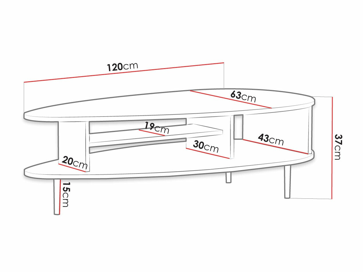 Die Möbel sind aus laminierten Spanplatten gefertigt, deren Kanten mit einem speziellen ABS-Band geschützt sind. Dank der hochwertigen ABS-Kanten sind die Möbel stossfester. Die Türen und Schubladen haben einen geräuschlosen Schliessmechanismus, dank dem sich die Schubladen und Türen leicht und ohne Geräusch schliessen. Die Fronten der Möbel sind mit kleinen schwarzen Metallgriffen verziert, die zu den Möbeln dieser eleganten Kollektion passen. Die zierlichen Metallbeine verleihen den unregelmässig geformten Möbeln Originalität und Stil.
