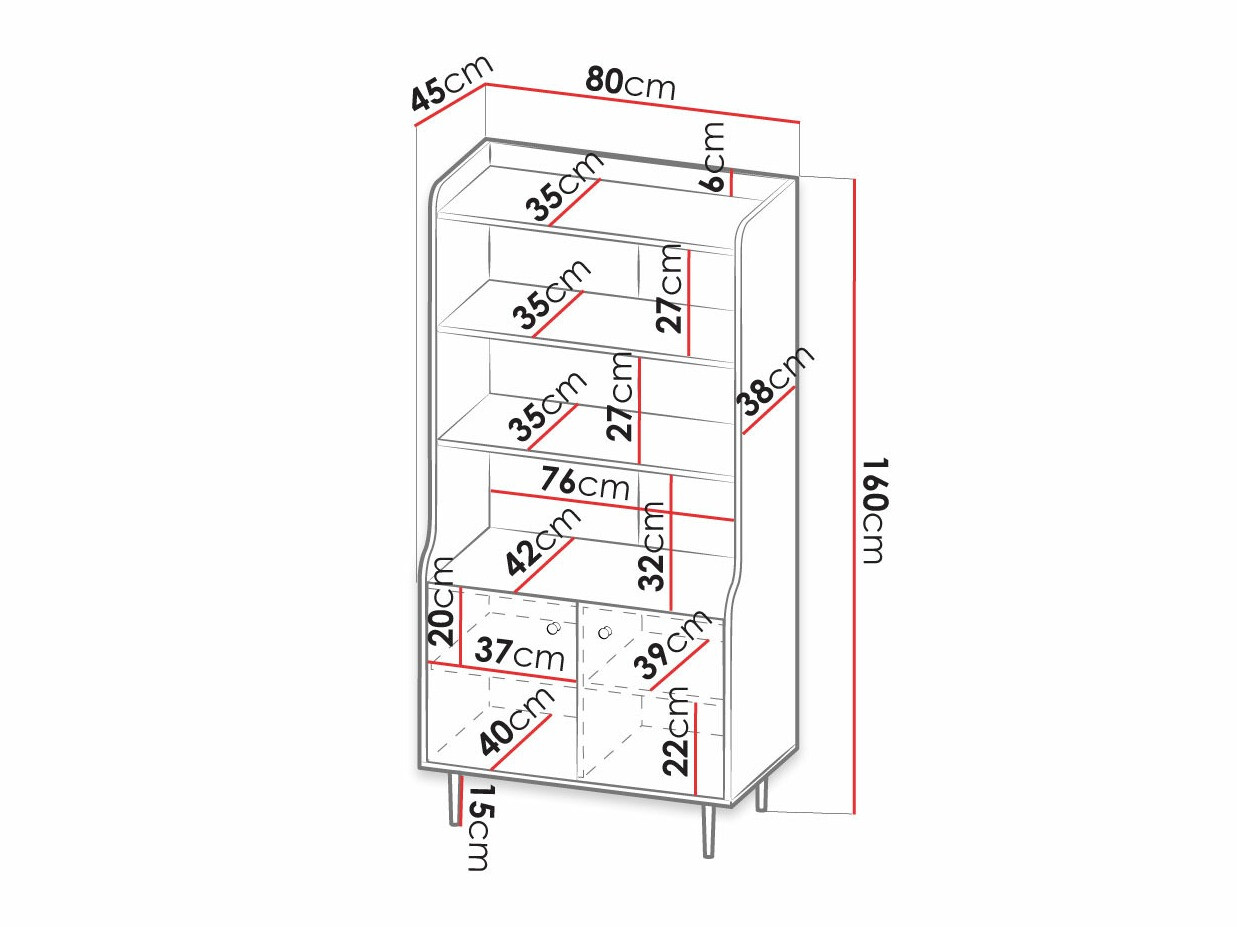Die Möbel sind aus laminierten Spanplatten gefertigt, deren Kanten mit einem speziellen ABS-Band geschützt sind. Dank der hochwertigen ABS-Kanten sind die Möbel stossfester. Die Türen und Schubladen haben einen geräuschlosen Schliessmechanismus, dank dem sich die Schubladen und Türen leicht und ohne Geräusch schliessen. Die Fronten der Möbel sind mit kleinen schwarzen Metallgriffen verziert, die zu den Möbeln dieser eleganten Kollektion passen. Die zierlichen Metallbeine verleihen den unregelmässig geformten Möbeln Originalität und Stil.