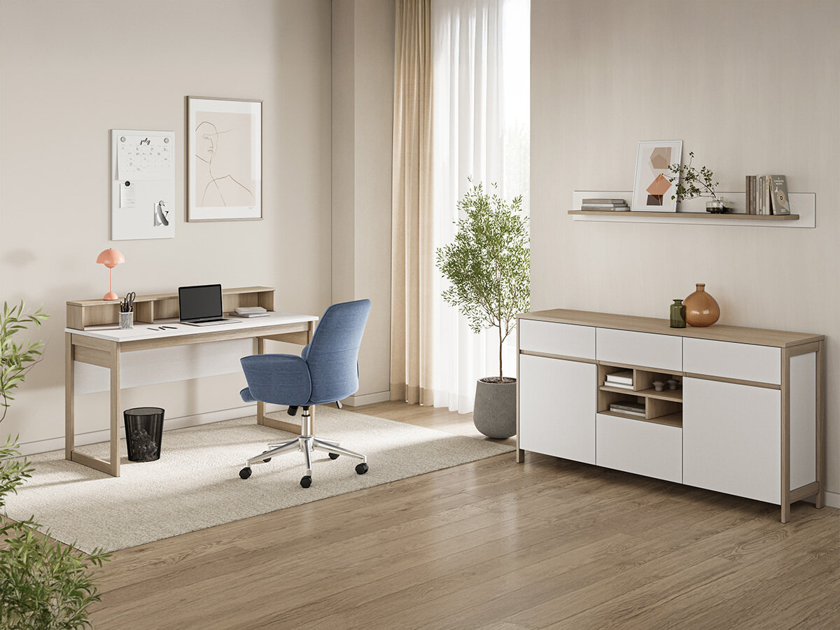 Büro-Set Fermaru 116 (Weiss + Eichenholzoptik)