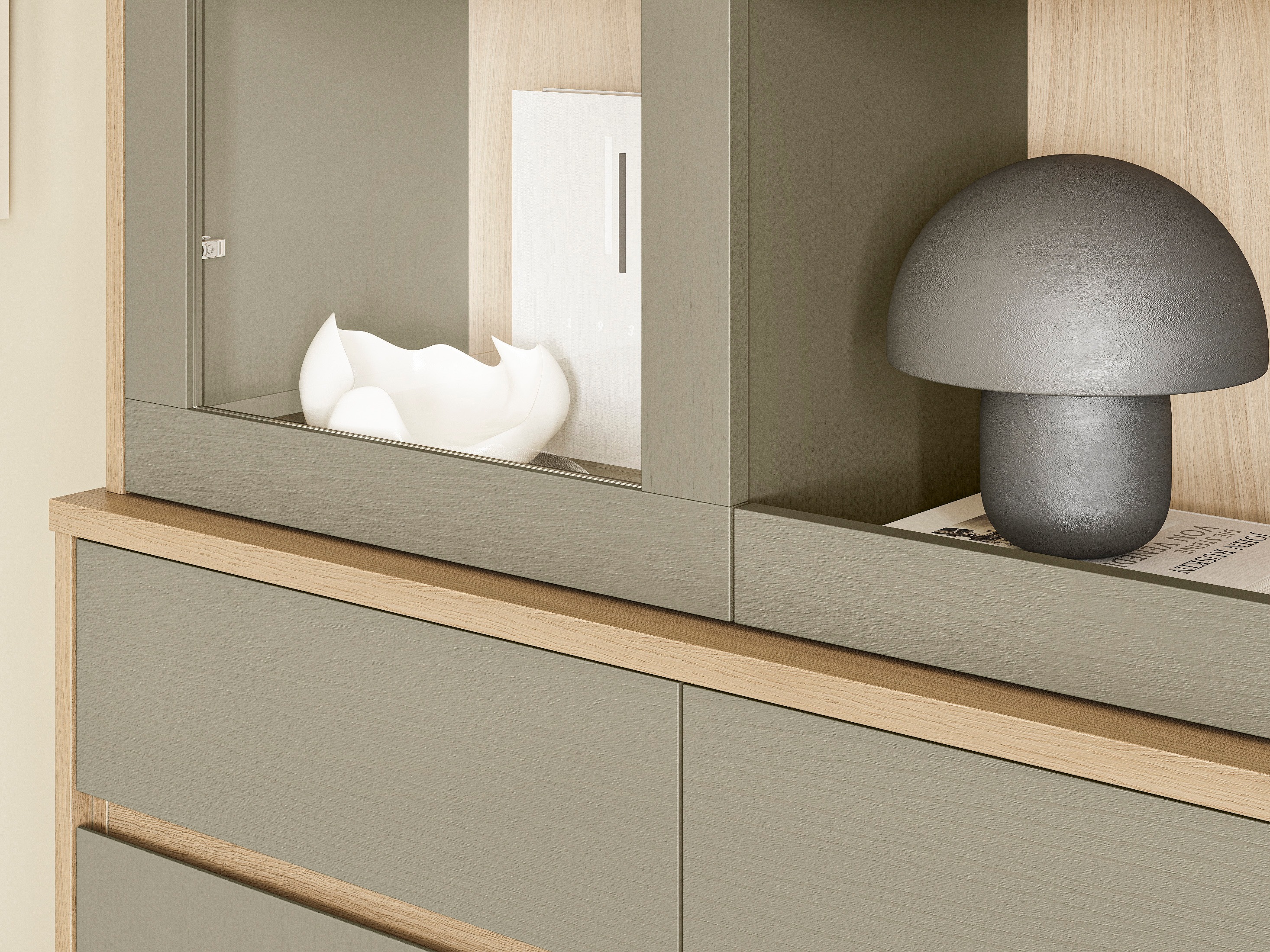 Regal Fermaru 100 (Staubiges Grün + Eichenholzoptik)