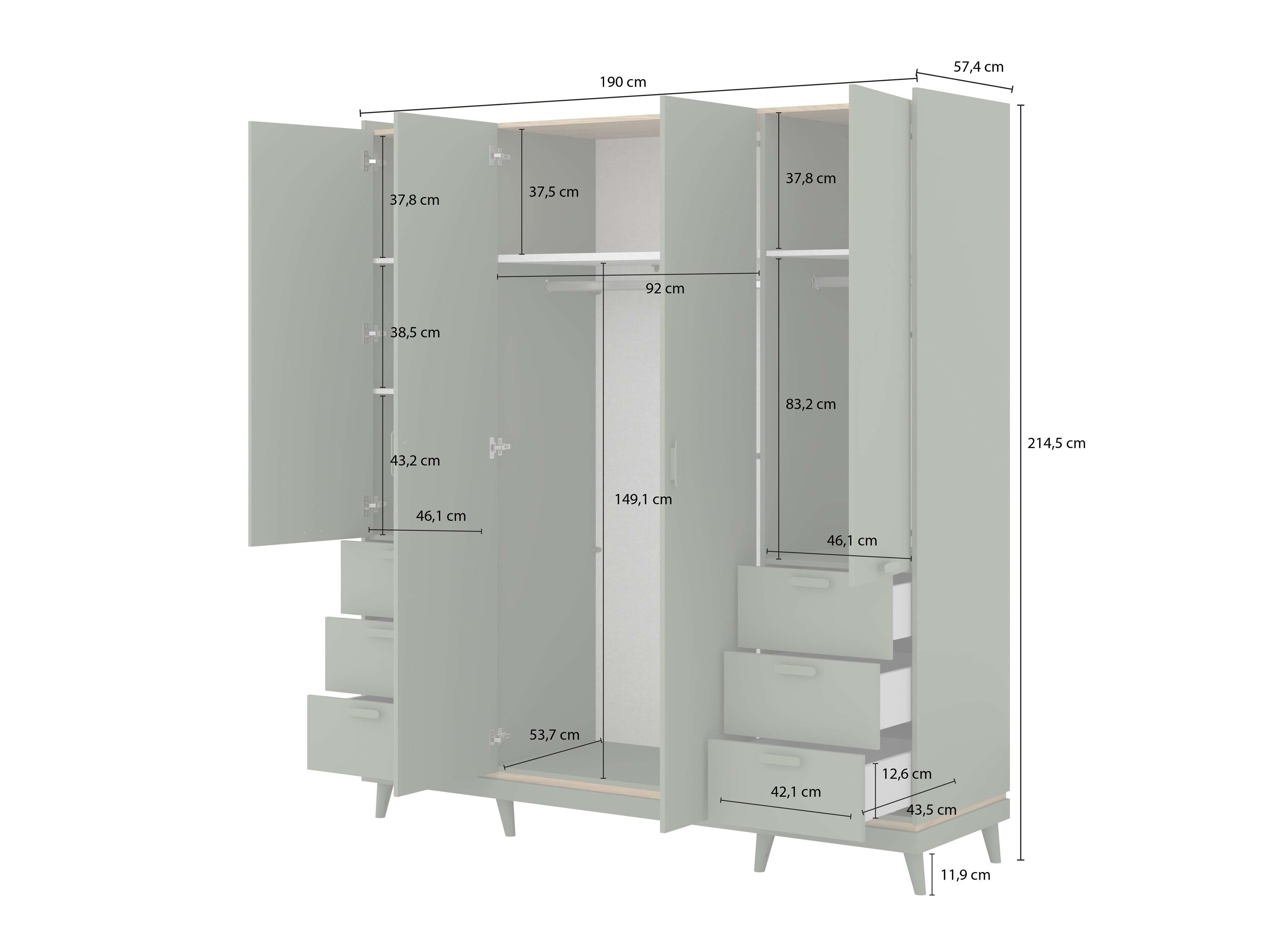 191 cm  90 cm  60 cm