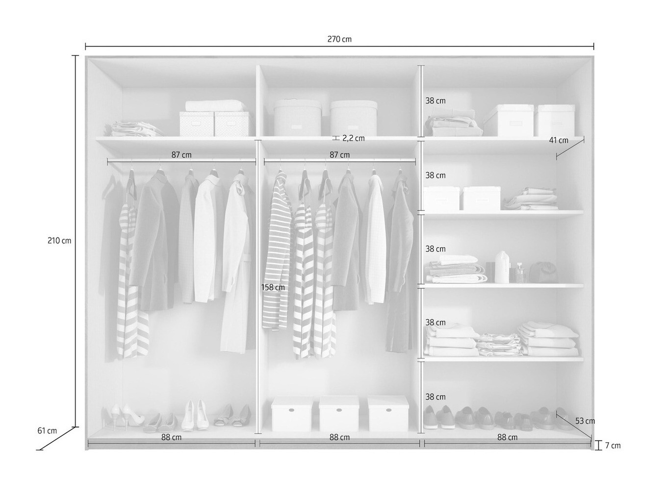 210 cm  270 cm  61 cm