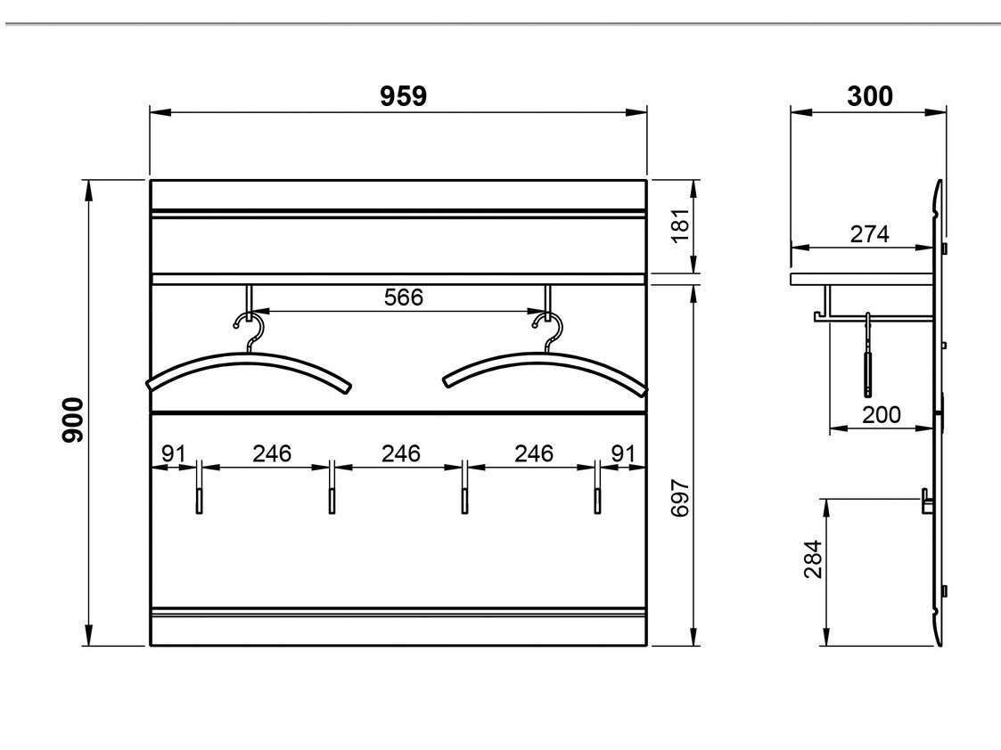 - An der Wand montierte Garderobe