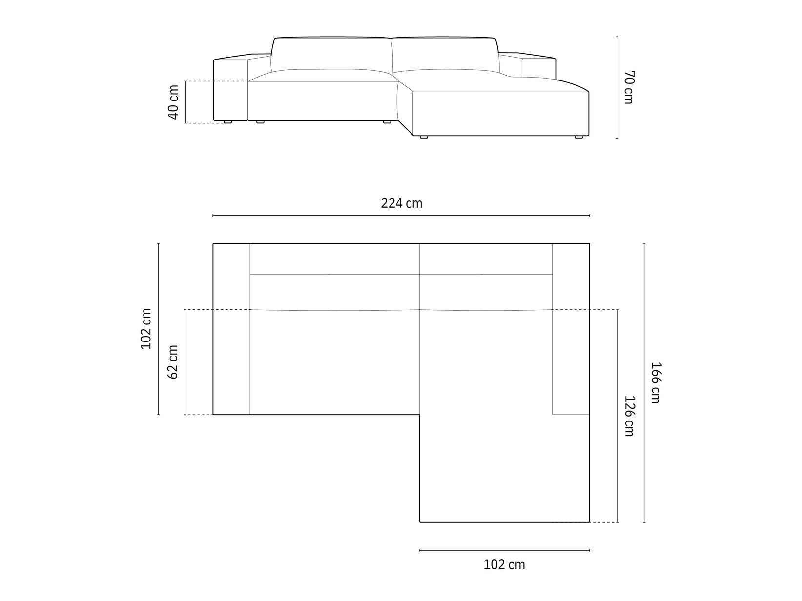 Wenn Sie das Sofa von vorne betrachten, befindet sich der verlängerte Teil bzw. die Ecke der rechtsseitigen Option auf Ihrer rechten Seite. Die gewählte Eckoption sollte den Fluss des Raums verbessern und eine einfache Bewegung innerhalb des Raums ermöglichen.