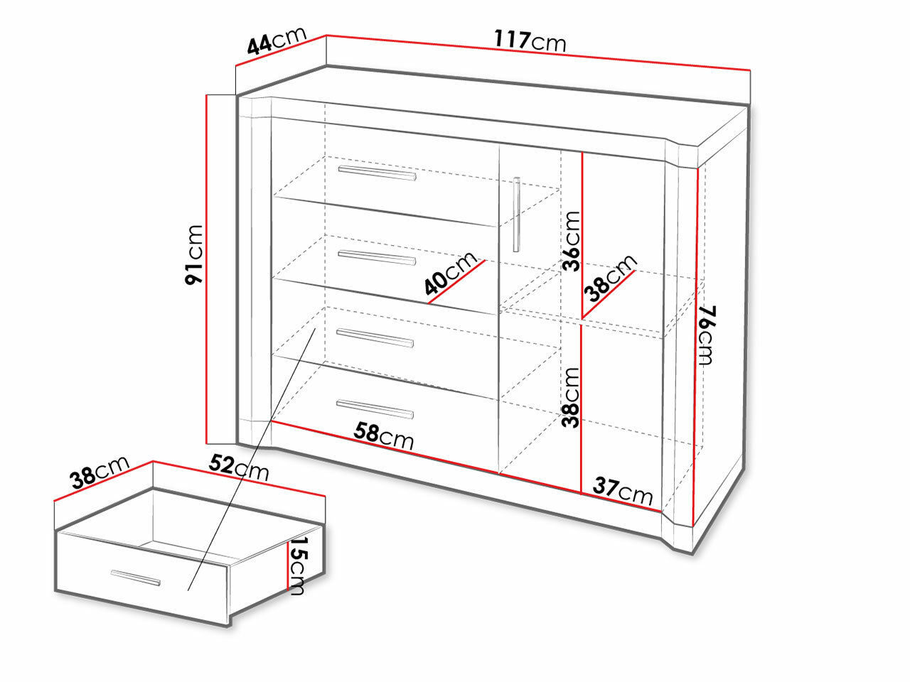 Kommoden Lorelie 102 (Trüffel eichenholzoptik)