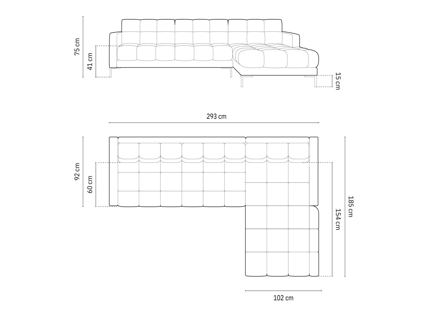 Wenn Sie das Sofa von vorne betrachten, befindet sich der verlängerte Teil bzw. die Ecke der rechtsseitigen Option auf Ihrer rechten Seite. Die gewählte Eckoption sollte den Fluss des Raums verbessern und eine einfache Bewegung innerhalb des Raums ermöglichen.