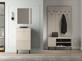 Diese Möbelkollektion zeichnet sich durch ihre einzigartige Ästhetik aus, bei der glatte Oberflächen stilvoll mit modernen Rillen kombiniert werden. Elegante, goldfarbene, minimalistische Griffe setzen dezente, aber raffinierte Designakzente. Der integrierte Soft-Close-Mechanismus sorgt für ein sanftes und leises Schliessen von Türen und Schubladen, während energieeffiziente, LED-beleuchtete Regale eine gemütliche Atmosphäre zu Hause schaffen. Die Kollektion eignet sich auch gut für Haushalte mit Staubsaugerrobotern – eine praktische Lösung, die die tägliche Reinigung vereinfacht und zusätzlichen Komfort bietet.