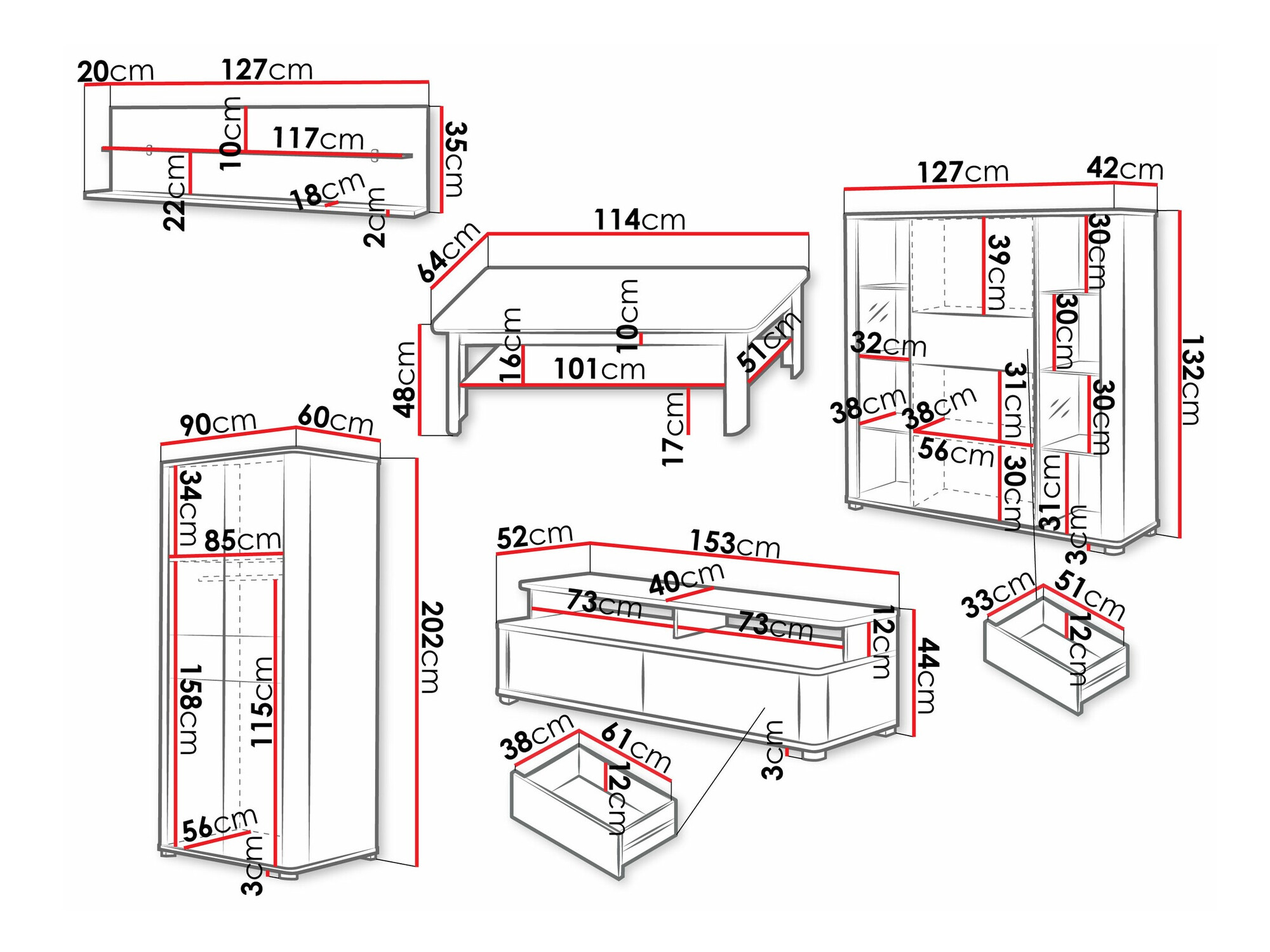Abmessungen der Schränke: