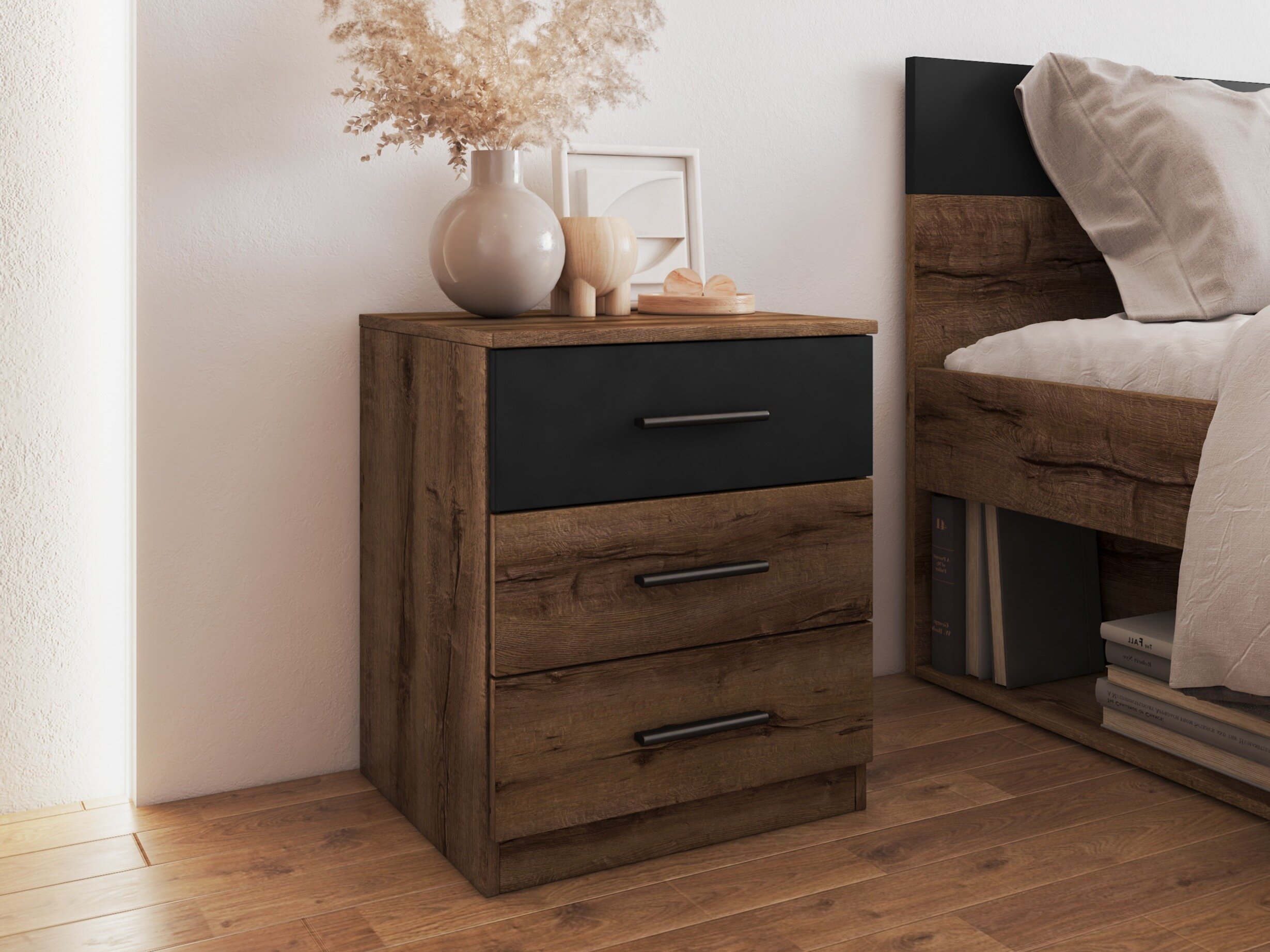 Die Schlafzimmerkollektion zeigt Möbel in modernen Farben und aus hochwertigen Möbelplatten. Die Kollektion umfasst ein Bett mit Bettkasten für eine angenehme Nachtruhe. Die Kollektion umfasst auch eine praktische Kommode mit Türen und Schubladen, Nachttische und einen Kleiderschrank. Mit dieser Kollektion lässt sich ein funktionelles und gemütliches Schlafzimmer einrichten. Diese Möbel werden auch höchsten Ansprüchen gerecht.