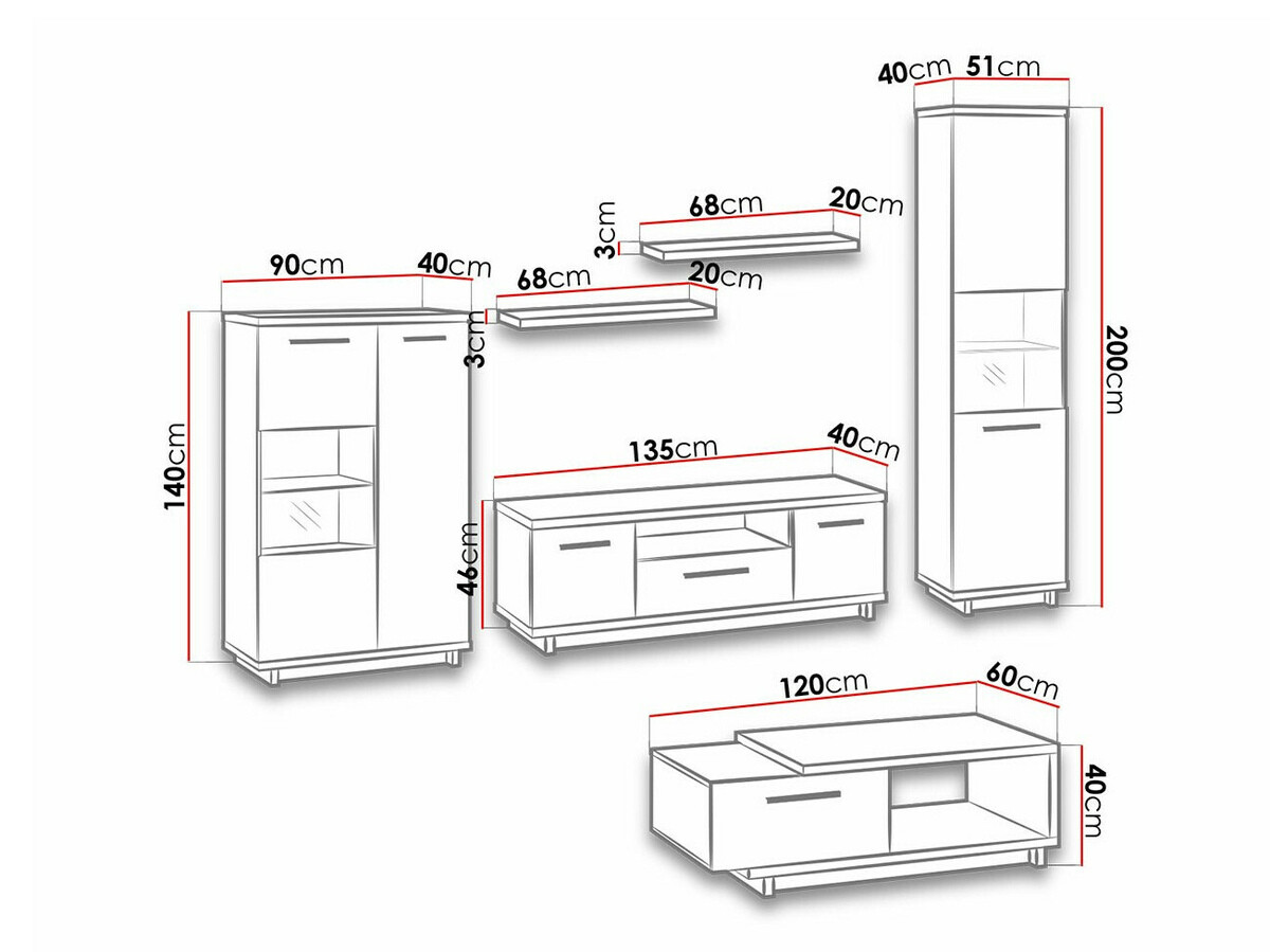 Diese Möbelkollektion bietet Möbel für das Wohn- und Schlafzimmer. Modernes Design und elegante Linien ergänzen sich zu einem perfekten Ganzen. Die Kollektion besticht durch ihre warmen Farben und Holzmuster. Die schwarzen Möbelplatten in Matt passen zu den Fronten in Eichenholzoptik. Diese Farbkombination ergänzt sich und unterstreicht die Form der Möbel. In Vitrinen wird gehärtetes Glas verwendet, das fester ist als gewöhnliches Glas. Ein Bett mit einem exklusiven Design wird zum Highlight des Schlafzimmers. Weiches Kopfteil, Bettkasten, Gasdruckfedern, alles was Sie für Ihre perfekte Erholung brauchen. Die Möbelkanten aus dieser Kollektion sind mit einem Abschlussband zum Schutz der Kanten ausgestattet.