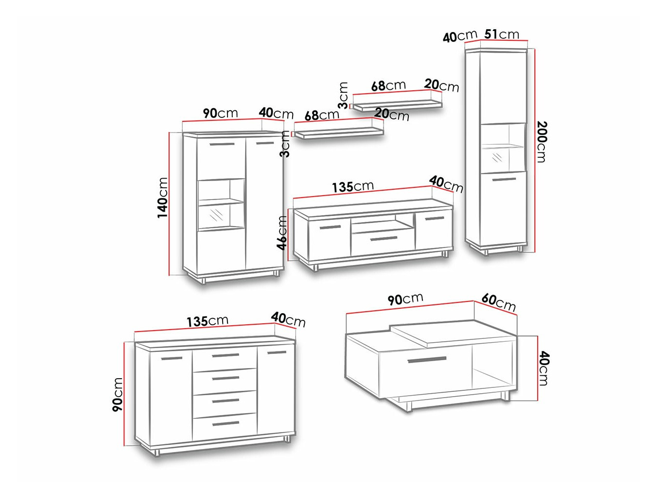 Diese Möbelkollektion bietet Möbel für das Wohn- und Schlafzimmer. Modernes Design und elegante Linien ergänzen sich zu einem perfekten Ganzen. Die Kollektion besticht durch ihre warmen Farben und Holzmuster. Die schwarzen Möbelplatten in Matt passen zu den Fronten in Eichenholzoptik. Diese Farbkombination ergänzt sich und unterstreicht die Form der Möbel. In Vitrinen wird gehärtetes Glas verwendet, das fester ist als gewöhnliches Glas. Ein Bett mit einem exklusiven Design wird zum Highlight des Schlafzimmers. Weiches Kopfteil, Bettkasten, Gasdruckfedern, alles was Sie für Ihre perfekte Erholung brauchen. Die Möbelkanten aus dieser Kollektion sind mit einem Abschlussband zum Schutz der Kanten ausgestattet.