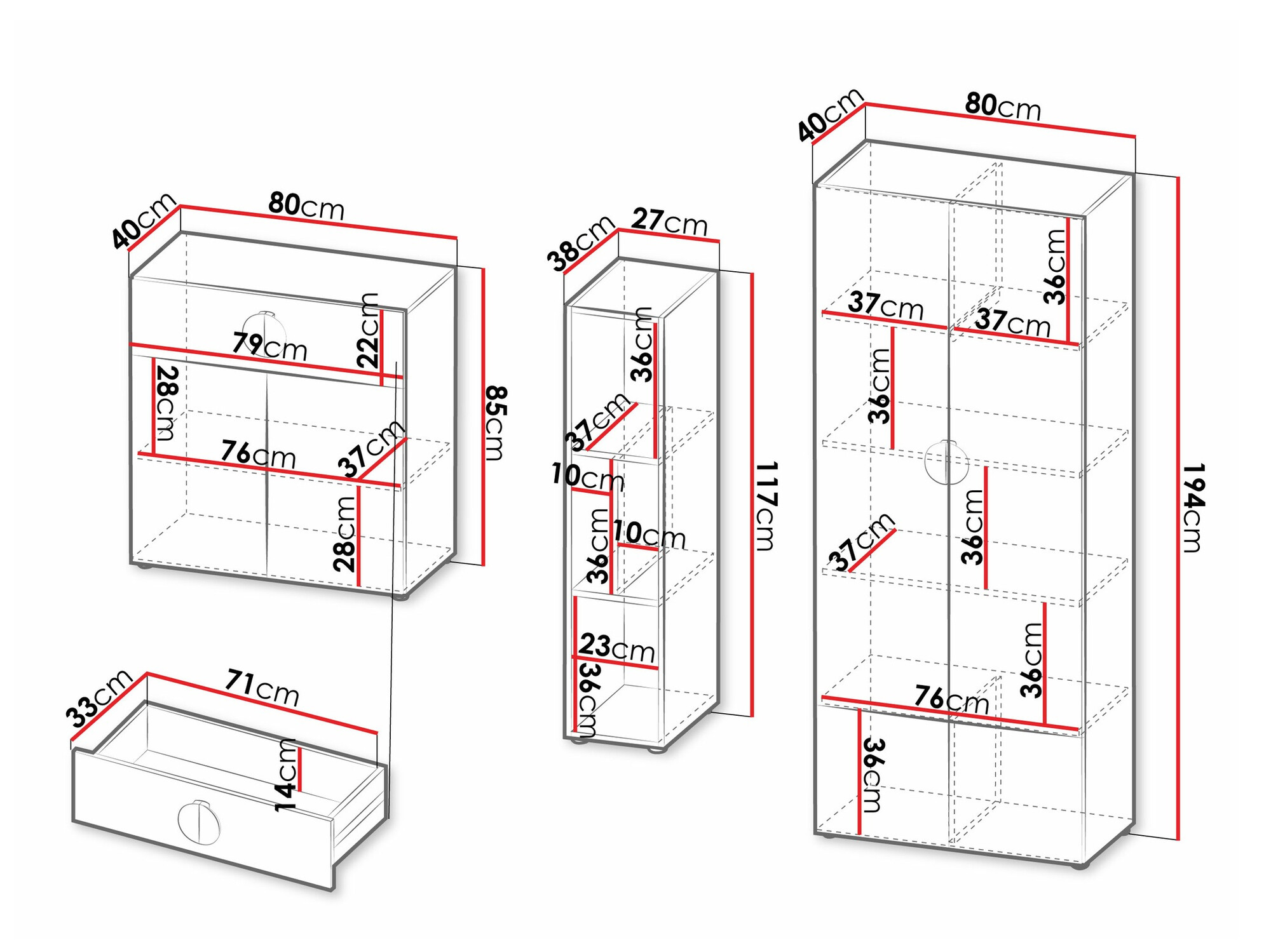 Abmessungen der Kommode: