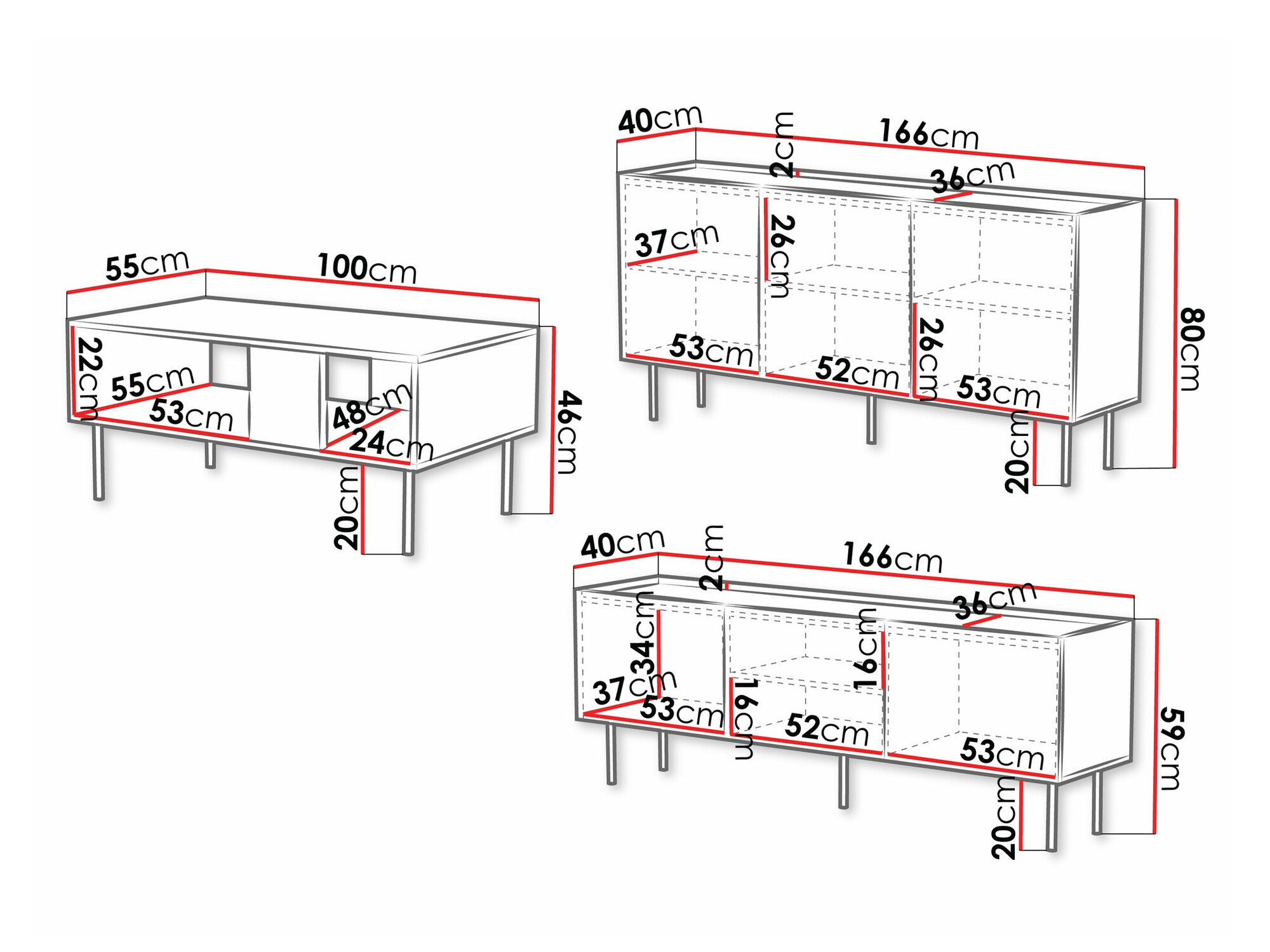 59 x 166 x 40 cm