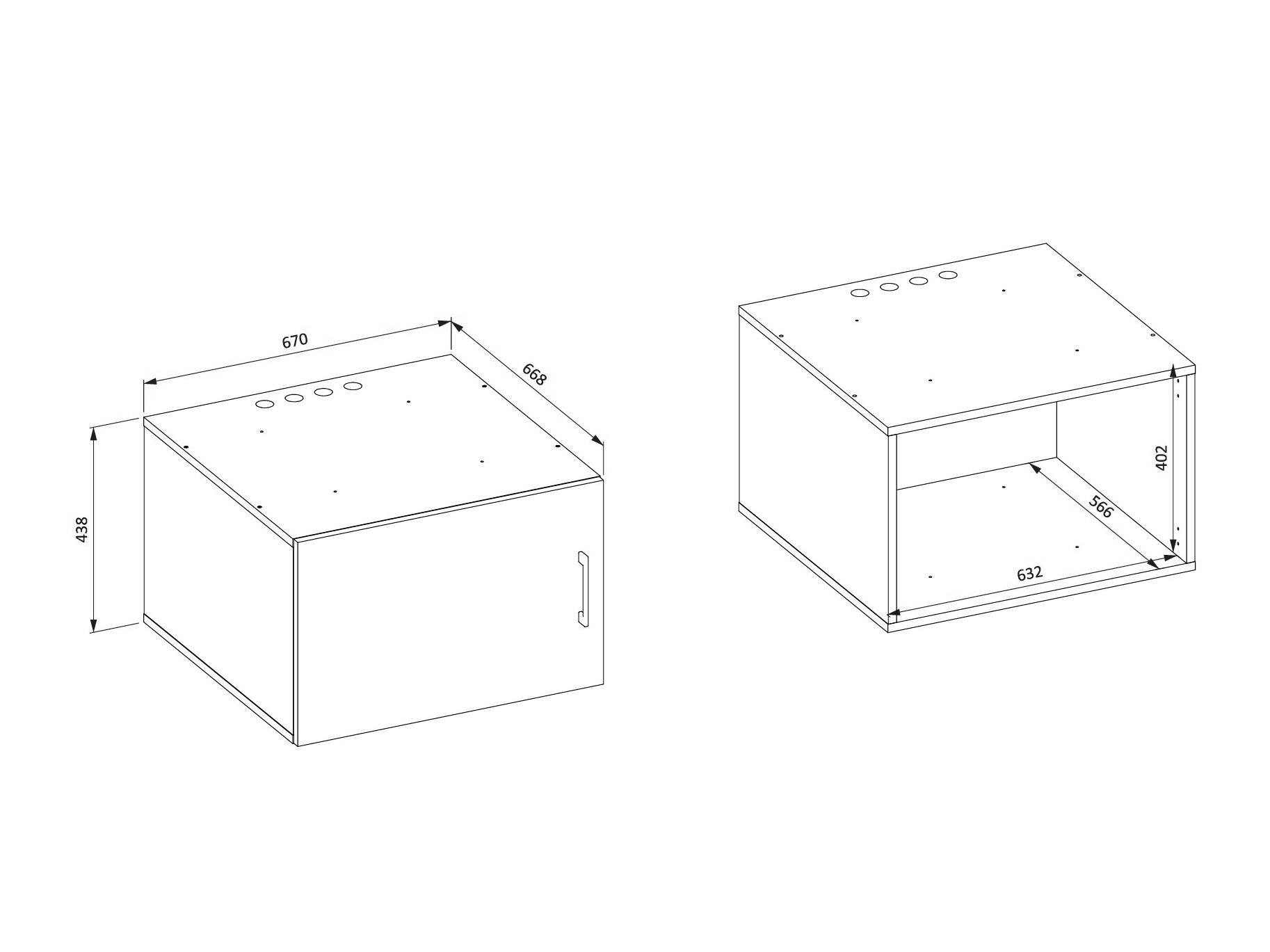 Abmessungen der Hängeschränke: