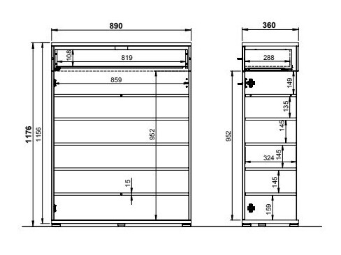 Informationen zur Wandbefestigung. Wandmontierte oder hängende Möbel werden ohne Montageschrauben geliefert, so dass Sie sich selbst um diese kümmern müssen. Verschiedene Arten von Wänden erfordern spezifische Schrauben oder sogar unterschiedliche Bohrtiefen. Wählen Sie das Befestigungsmaterial entsprechend dem Gewicht des Möbelstücks und der Art der Wand (z. B. Trockenbauwand, Mauerwerk, Holz usw.). Um Qualität und Sicherheit zu gewährleisten, sollten Sie Schrauben verwenden, die speziell für Ihre Wandart geeignet sind.