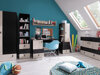 Wenn wir ein Zimmer für ein Kind oder einen Jugendlichen einrichten, müssen wir darauf achten, dass die Möbel praktisch sind und den Erwartungen der jungen Leute entsprechen. Genau das finden Sie in der Möbelkollektion für den Jugendzimmerbereich. Wenn man die Kollektion mit wenigen Worten beschreiben müsste, wären es sicher modern und praktisch. Die Anordnung der Schränke und Schubladen wird durch die Farbpalette unterstrichen. Wenn Sie noch am Überlegen sind, welche Farben Sie im Zimmer haben möchten, werden Ihnen die beiden Farbkombinationen die Entscheidung erleichtern. Die Kombination aus Weiss, Eichenholzoptik und Türkis eignet sich für eine helle und verspielte Einrichtung, die durch einen türkisfarbenen Akzent ergänzt wird. Die Kombination aus Schwarz, Eichenholzoptik und Beige schafft ein kontrastreiches und gleichzeitig elegantes Design. Die Möbelfronten werden durch kleine Metallgriffe ergänzt. Zahlreiche Fächer sorgen für Ordnung und bieten Platz für alle wichtigen Dinge. In der Kollektion finden Sie einen besonders geräumigen Eckschrank, einen Schreibtisch, ein Bett, ein Regal und vieles mehr. Die Möbelkollektion ist für junge Personen konzipiert und angepasst. Zum Traumzimmer fehlt nur noch ein Schritt: die Wahl der Farbkombination.