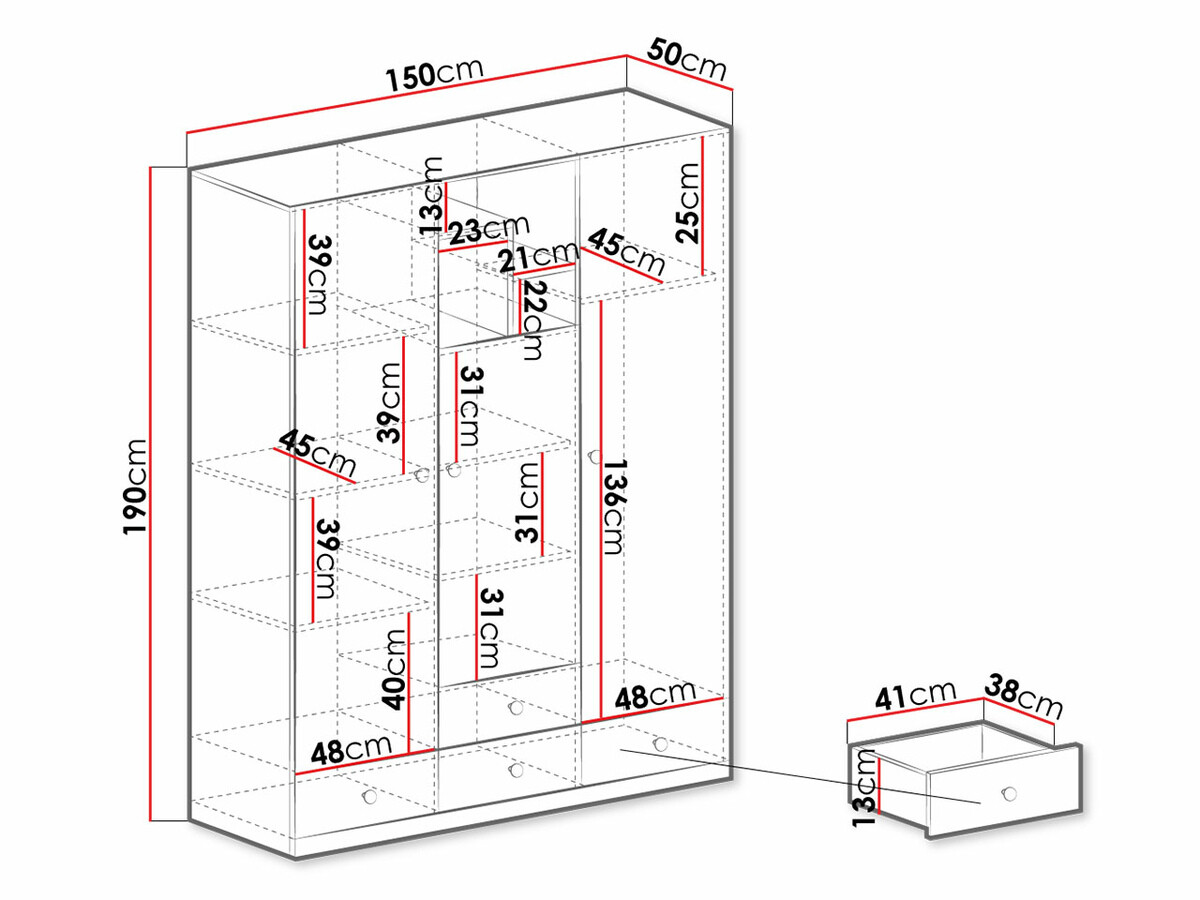 Wir empfehlen, Möbel an der Wand zu befestigen. Vergewissern Sie sich vor der Befestigung des Möbels, dass die Schrauben für die Wand geeignet sind, an der das Möbelstück angebracht werden soll, damit die Qualität der Befestigung gewährleistet ist. Den Hängemöbeln oder wandmontierten Möbeln liegen keine Befestigungsschrauben bei, so dass Sie sich selbst darum kümmern müssen. Jede Wand erfordert eine andere Art von Schrauben oder sogar eine andere Bohrtiefe. Wählen Sie die Möbelbefestigungsschrauben entsprechend dem Gewicht der Möbel und der Art der Wände: Putz, Mauerwerk, Holz usw. Wählen Sie aus Gründen der Qualität und Sicherheit nur Schrauben für eine bestimmte Wand.