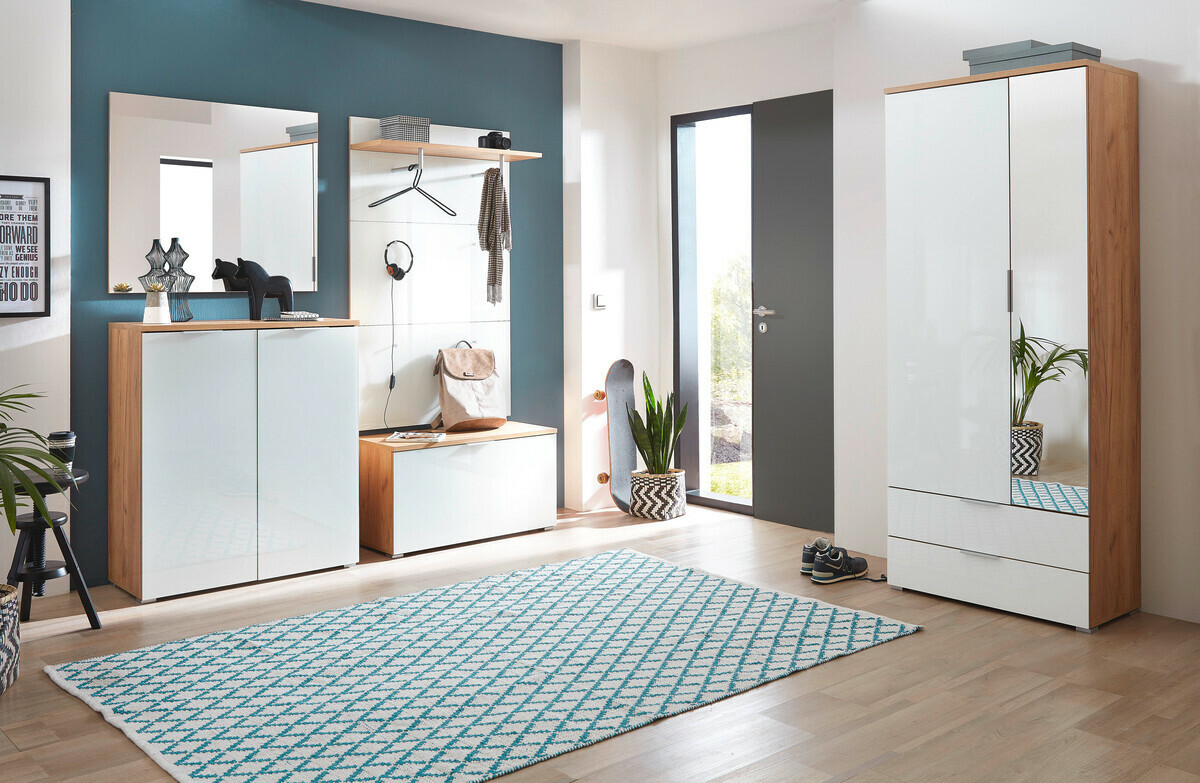 Die Möbelkollektion verkörpert den modernen Innenraum. Die vorherrschende Farbe Weiss wird durch helle Holzdekore und Metallgriffe in minimalistischem Design ergänzt. Alle Möbelfronten sind mit gehärtetem Glas verkleidet, das extrem widerstandsfähig ist. Die Möbel dieser Kollektion verfügen über einen geräuschlosen Schliessmechanismus. Das Besondere an diesem Mechanismus ist, dass er die Türen und Schubladen vor dem schnellen Schliessen schützt. Dank spezieller Bremsen werden die Türen und Schubladen kurz vor dem Schliessen angehalten und langsam eingezogen, so dass kein Geräusch entsteht. Schaffen Sie mit dieser Möbelkollektion eine harmonische Umgebung.