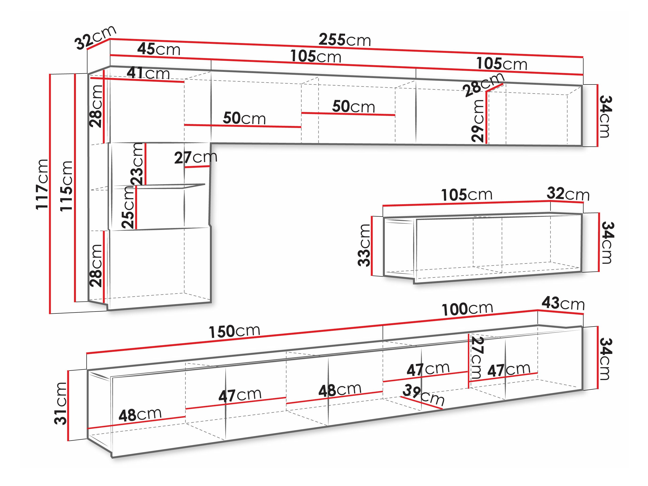 Abmessungen der Hängeschränke: