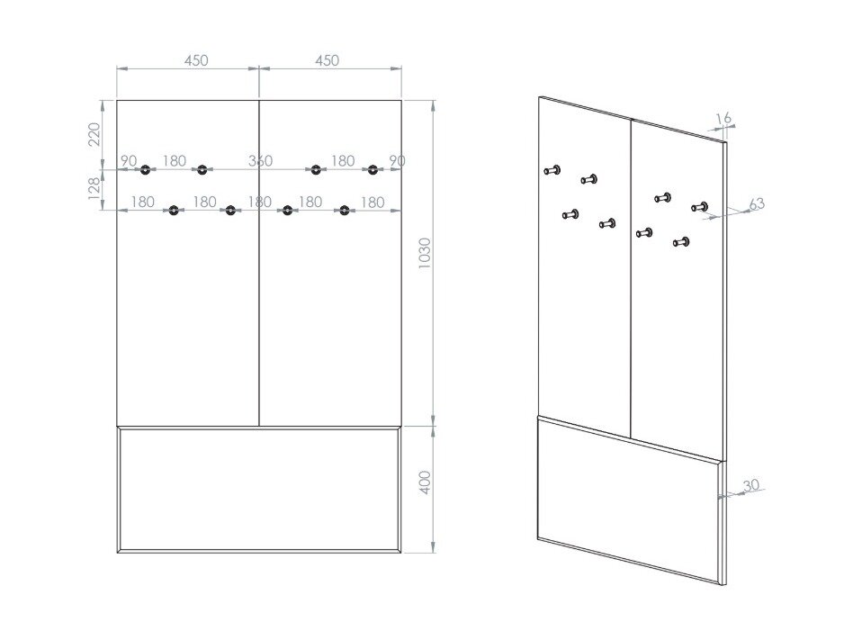 • An der Wand montierte Garderobe