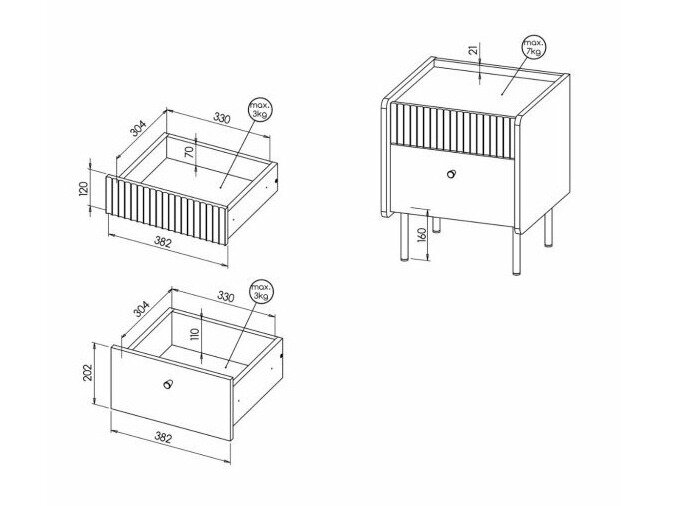 Maximale Gewichtskapazität für die Schublade: